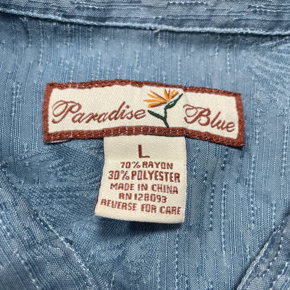 USA 古着 パラダイスブルー レーヨン/ポリ 開襟 アロハシャツ ハワイアンシャツ ジャガード ヤシの木 パームツリー メンズL ブルー BF4354