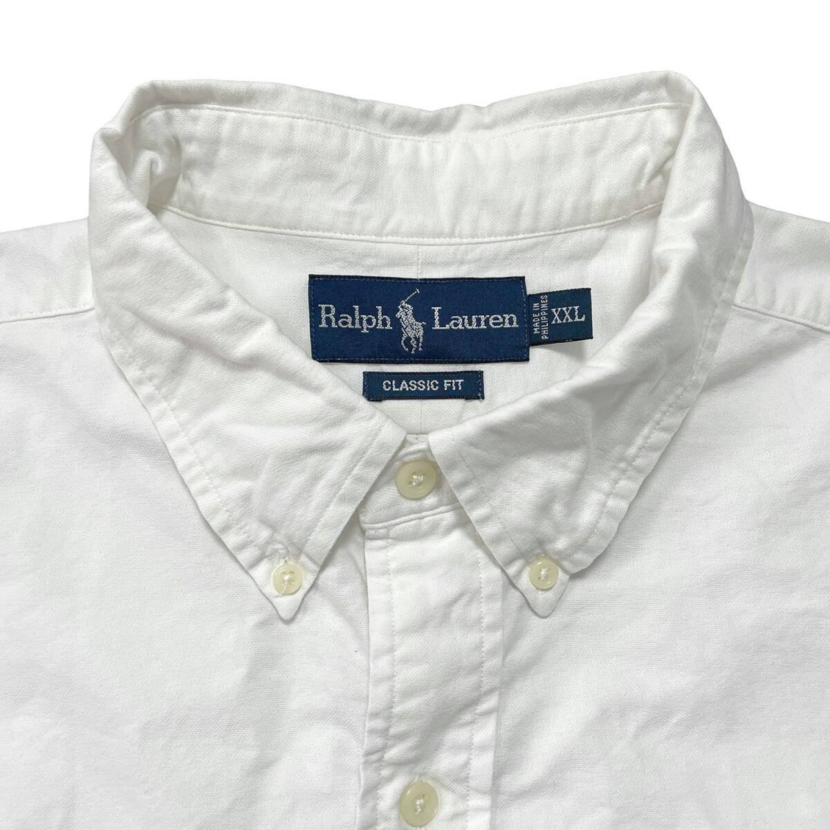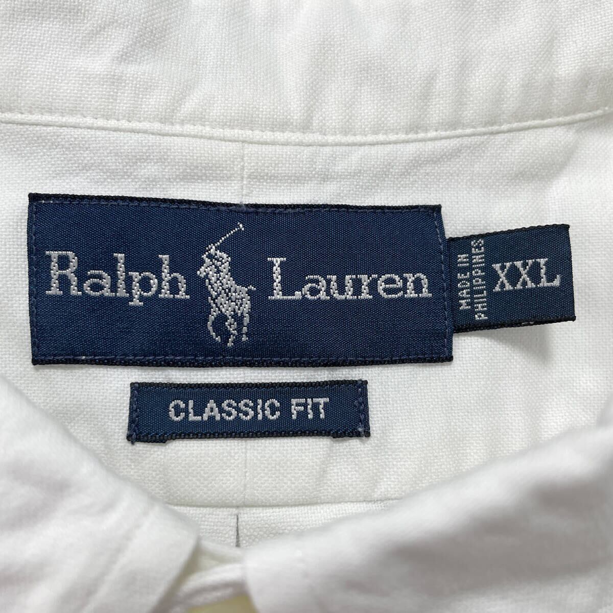 USA 古着 Ralph Lauren ラルフローレン オックスフォード コットン BDシャツ 半袖シャツ ワンポイント メンズXXL ホワイト 白シャツ BF4359