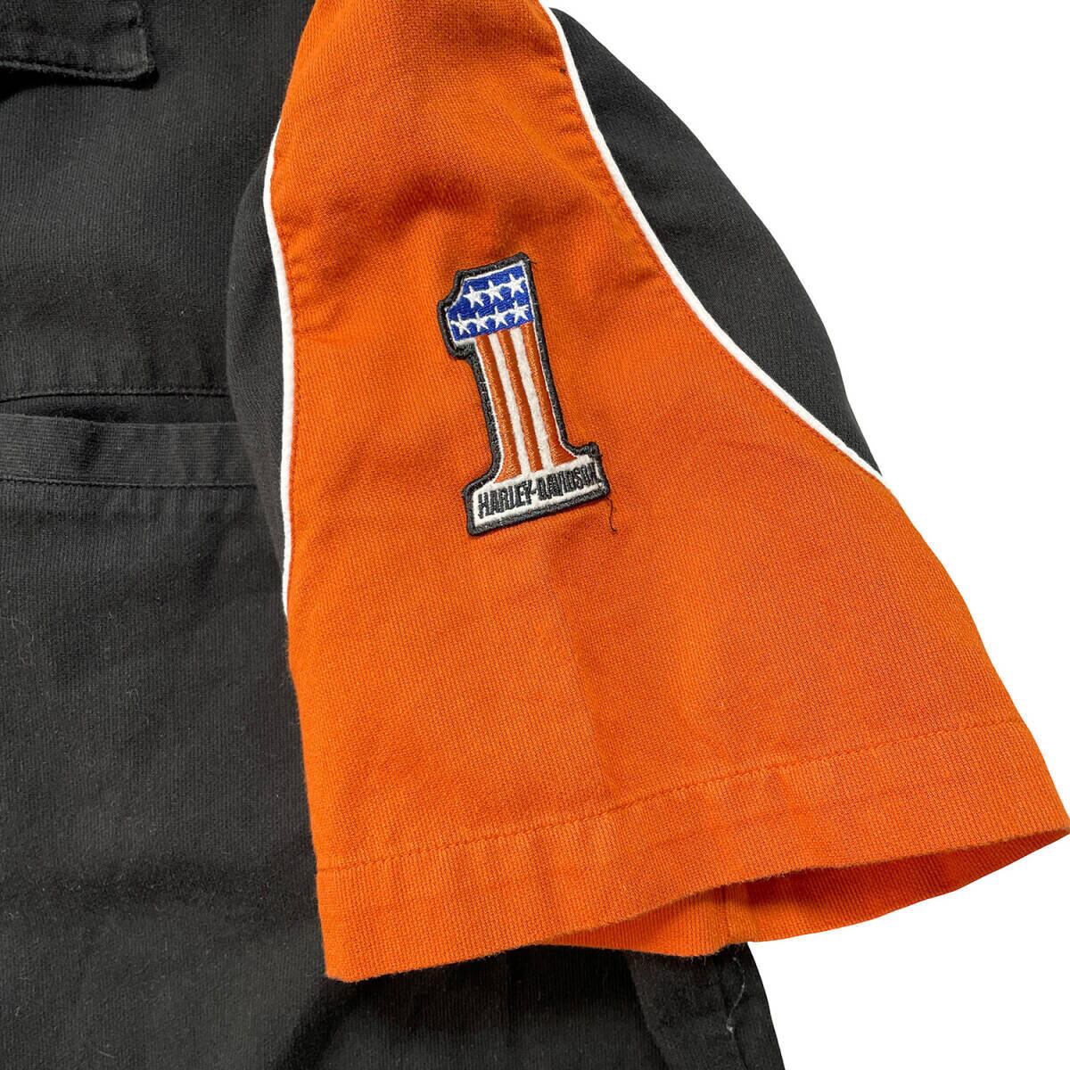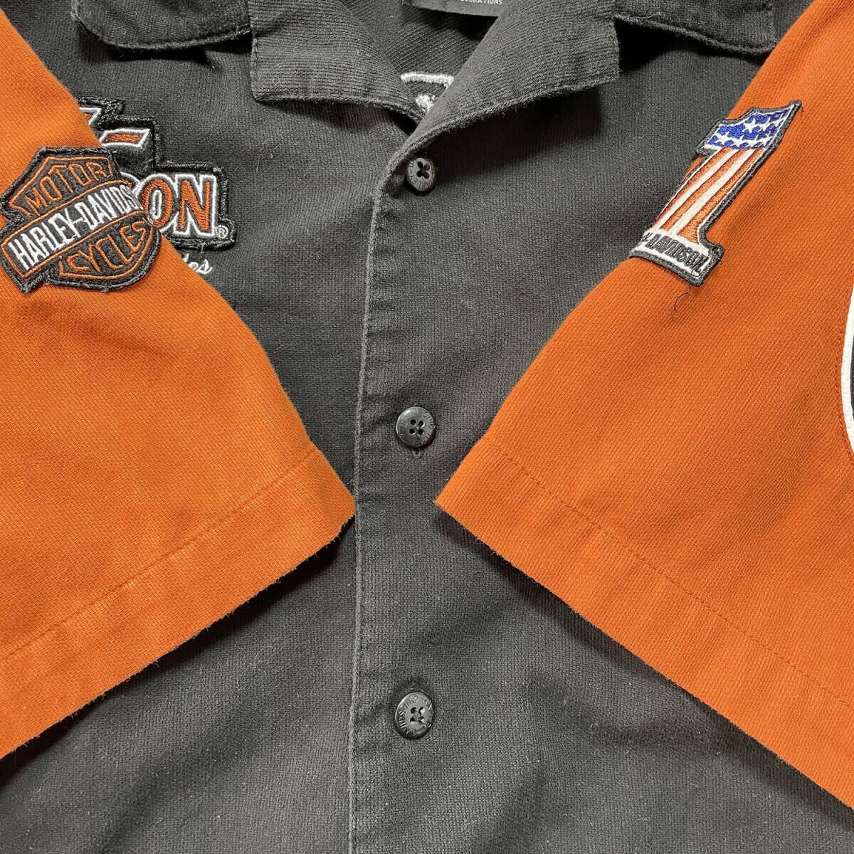 USA 古着 HARLEY-DAVIDSON ハーレーダビッドソン 開襟 半袖シャツ 刺繍 ロゴ メンズXL ブラック BF4363