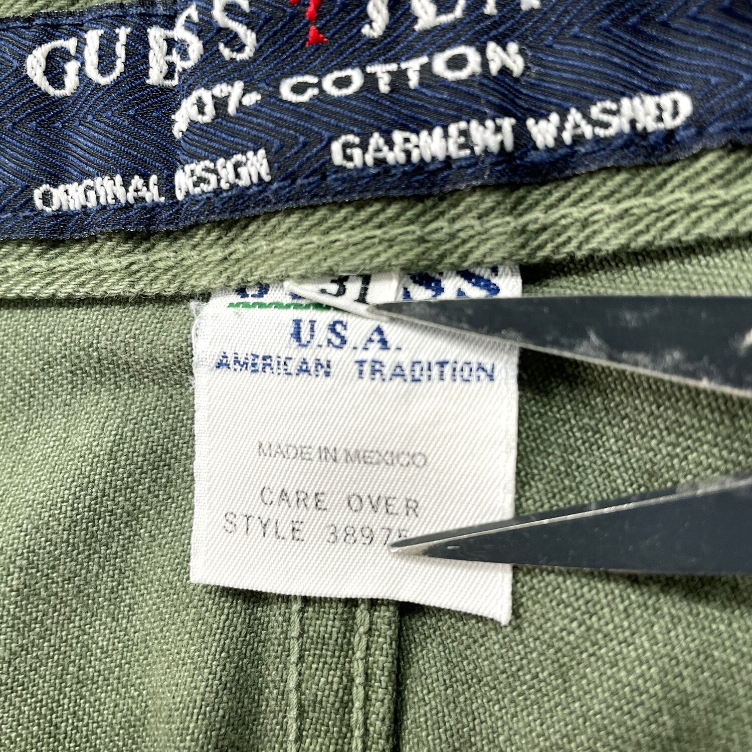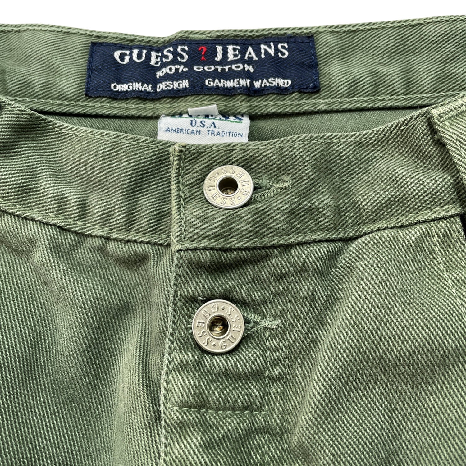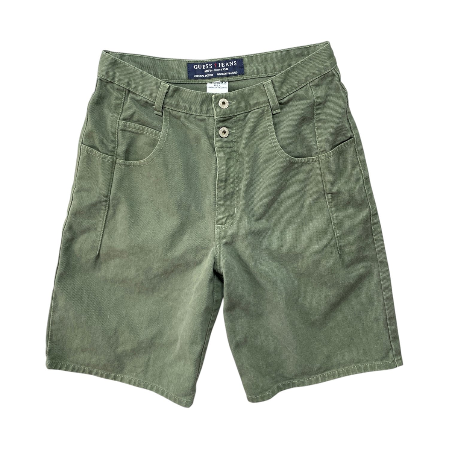 USA 古着 90S GUESS JEANS ヴィンテージ オールド ゲス ジーンズ ショーツ ハーフパンツ デニムショーツ W31 オリーブ系 CE0370