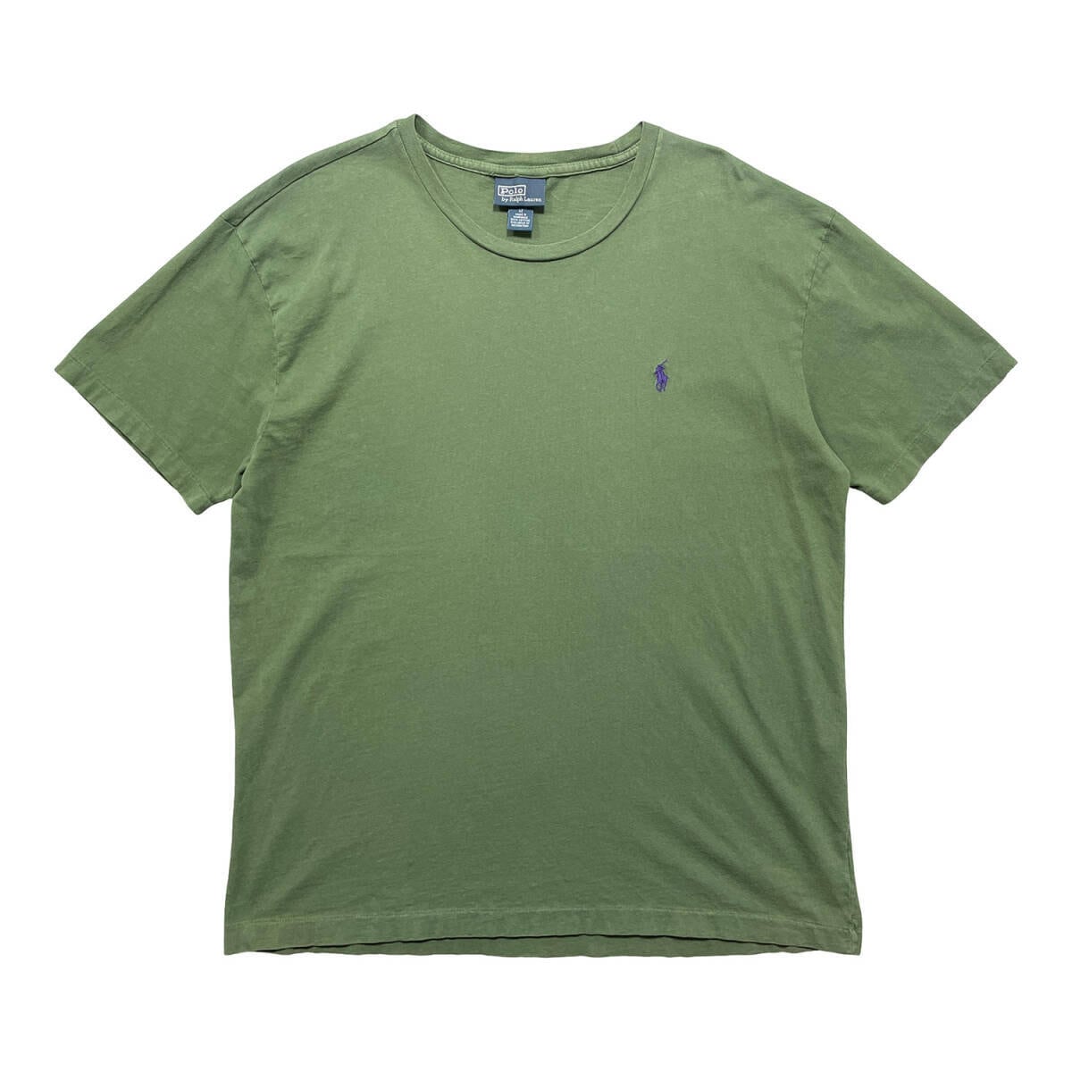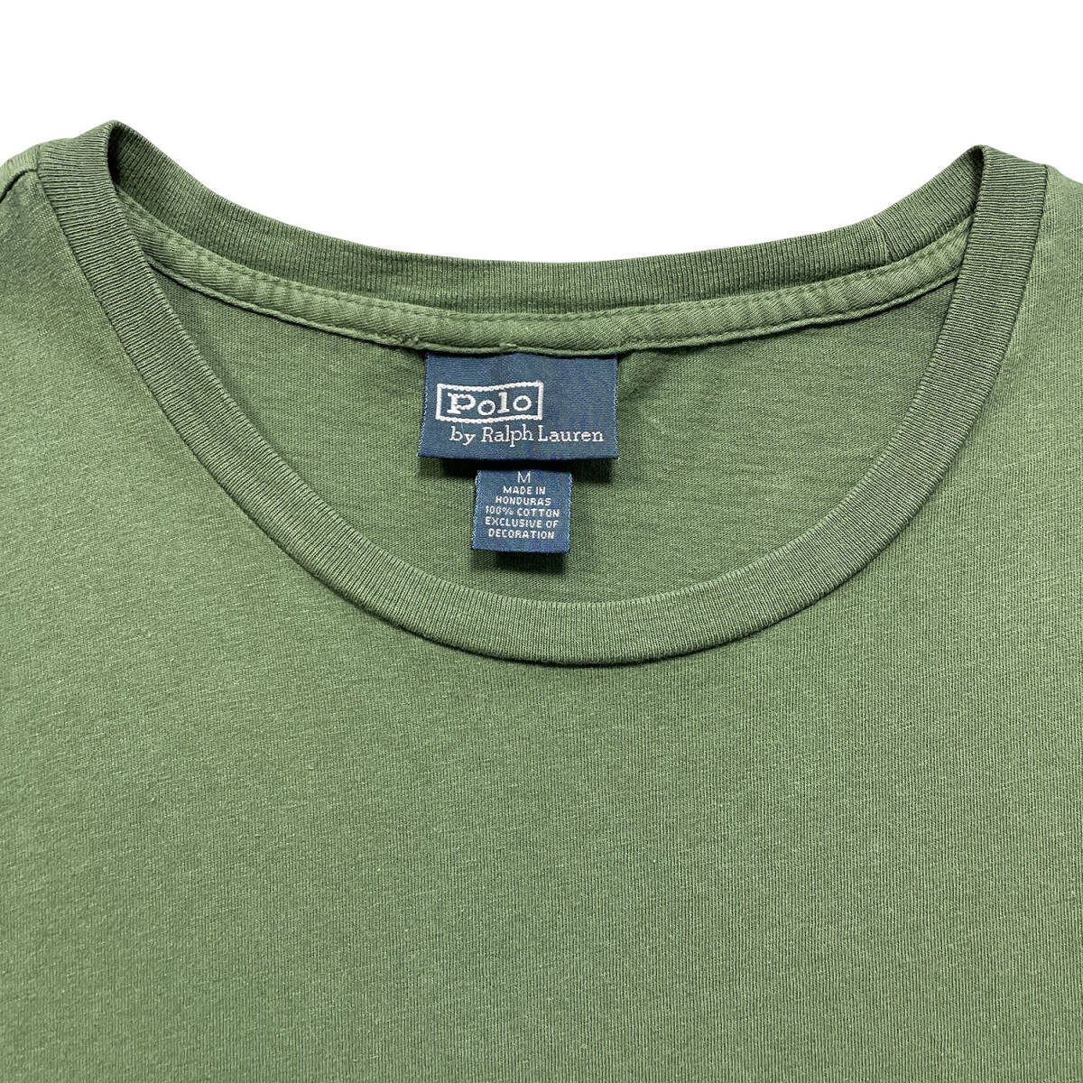 USA 古着 POLO RALPH LAUREN ポロ ラルフローレン クルーネック Tシャツ 刺繍 メンズM カーキ BA5344
