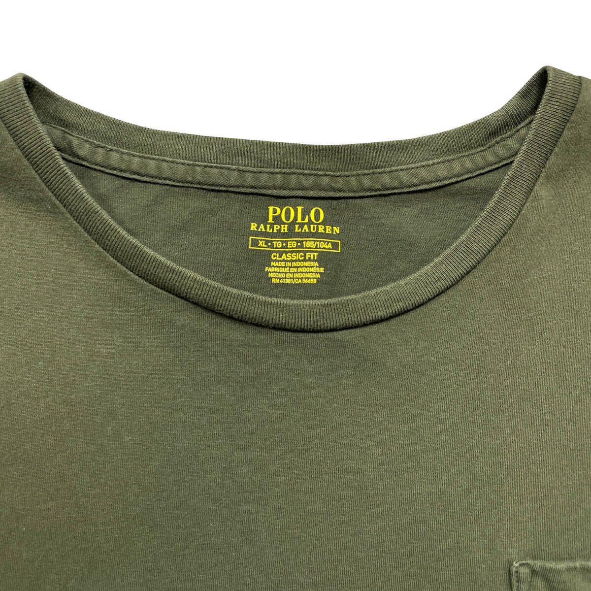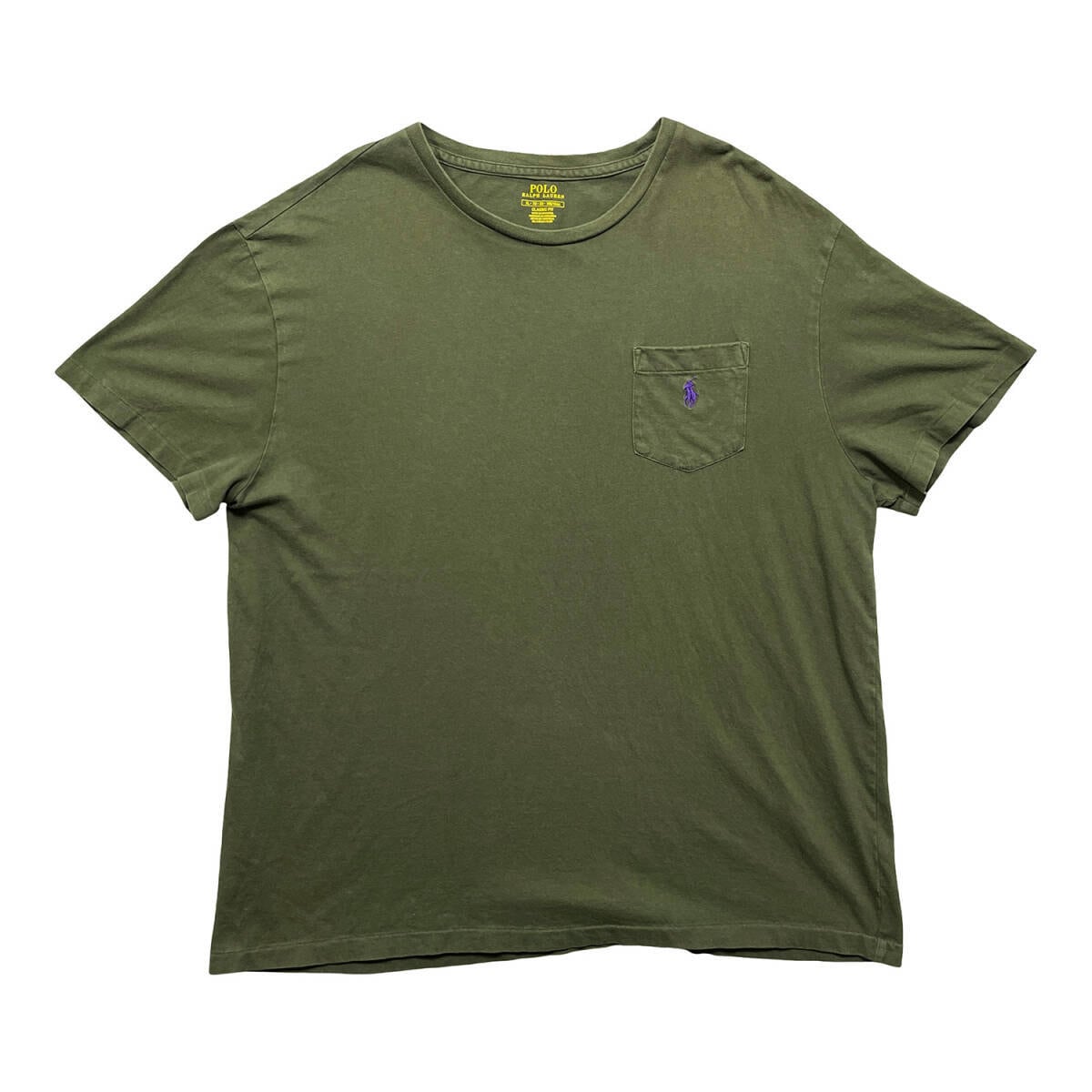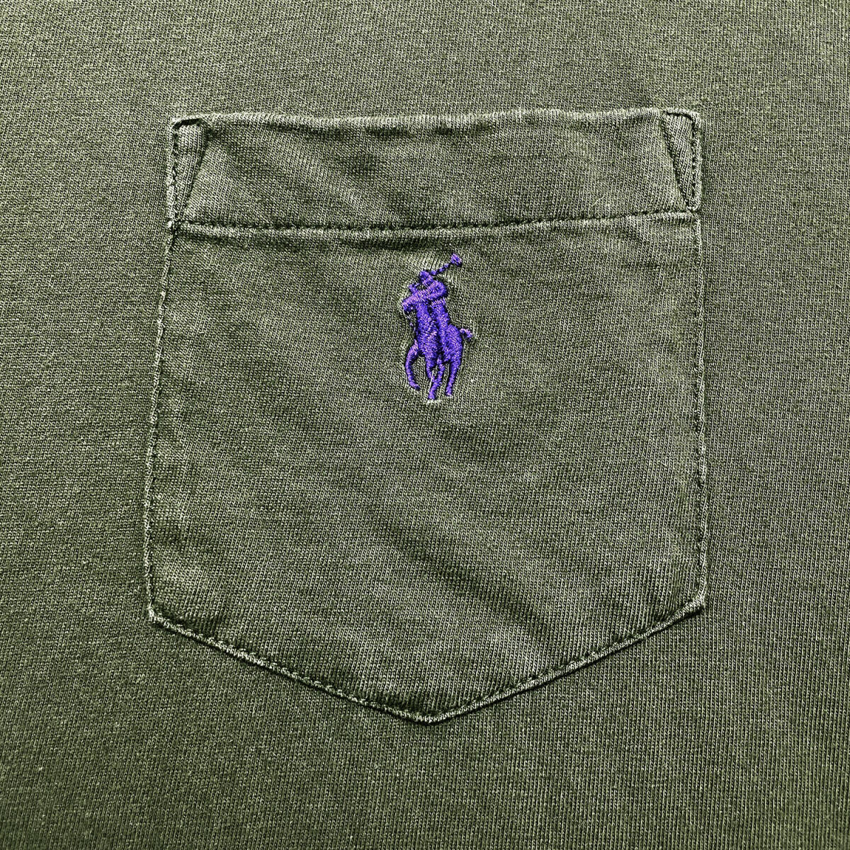 USA 古着 POLO RALPH LAUREN ポロ ラルフローレン クルーネック Tシャツ 刺繍 ポケット メンズXL カーキ BA5343