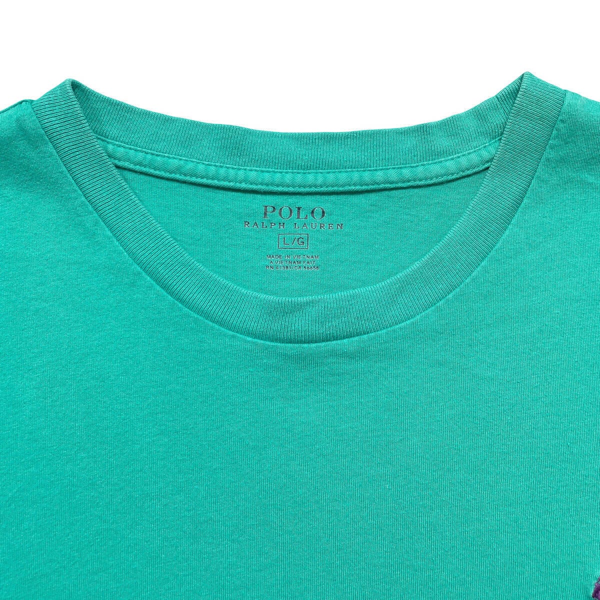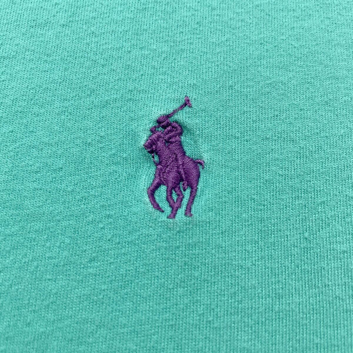 USA 古着 POLO RALPH LAUREN ポロラルフローレン ワンポイントロゴ クルーネック Tシャツ 刺繍 メンズL グリーン BA5340