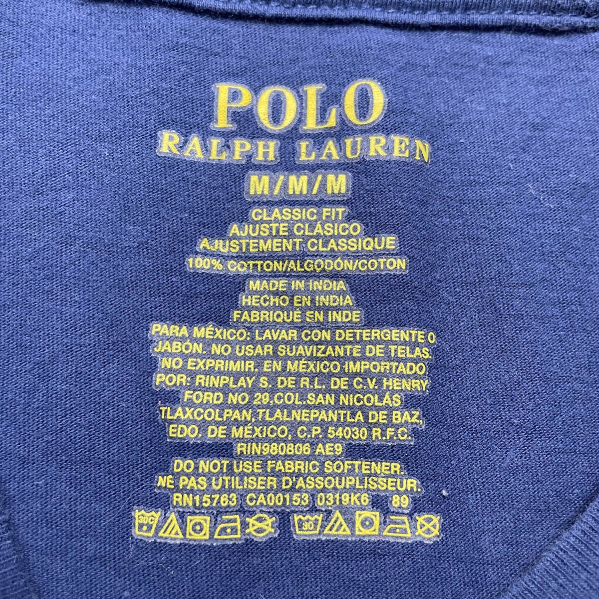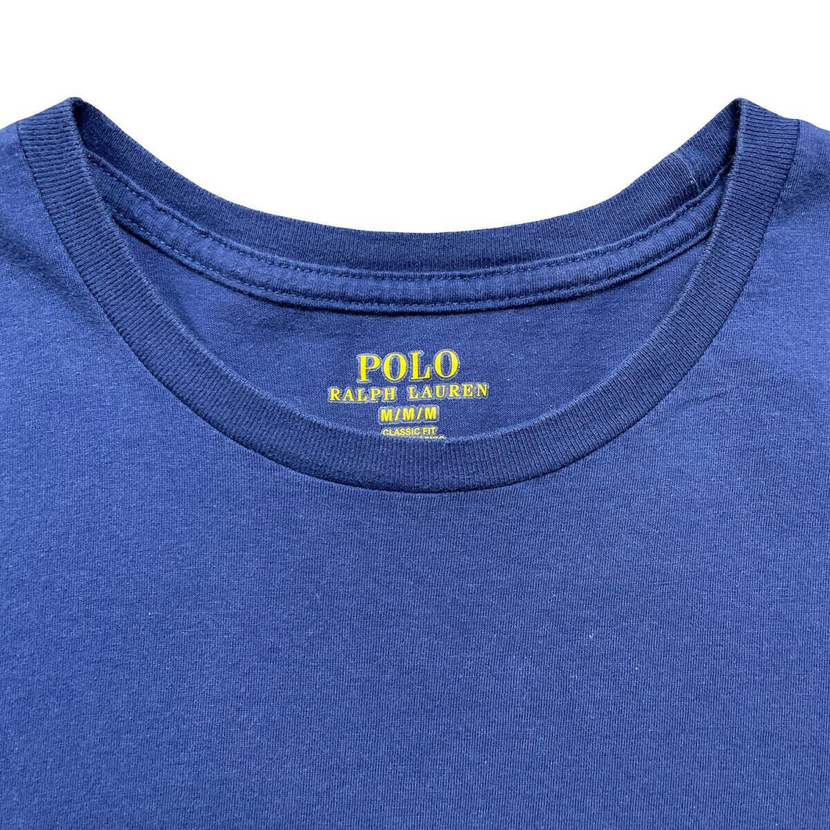 USA 古着 POLO RALPH LAUREN ポロ ラルフローレン クルーネック Tシャツ 刺繍 裾ポニー メンズM ネイビー BA5333