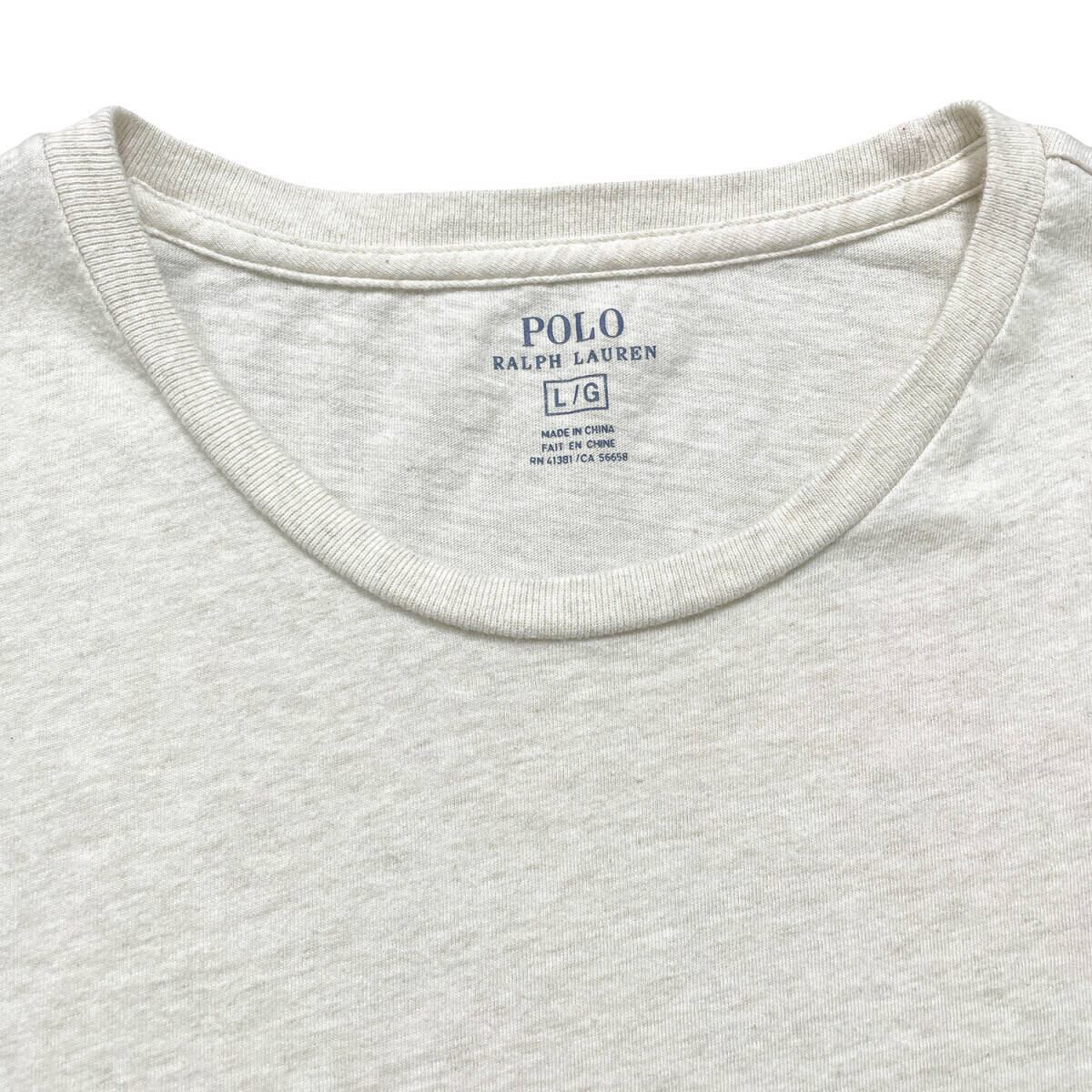 USA 古着 POLO RALPH LAUREN ポロ ラルフローレン クルーネック Tシャツ 刺繍 メンズL ベージュ BA5323