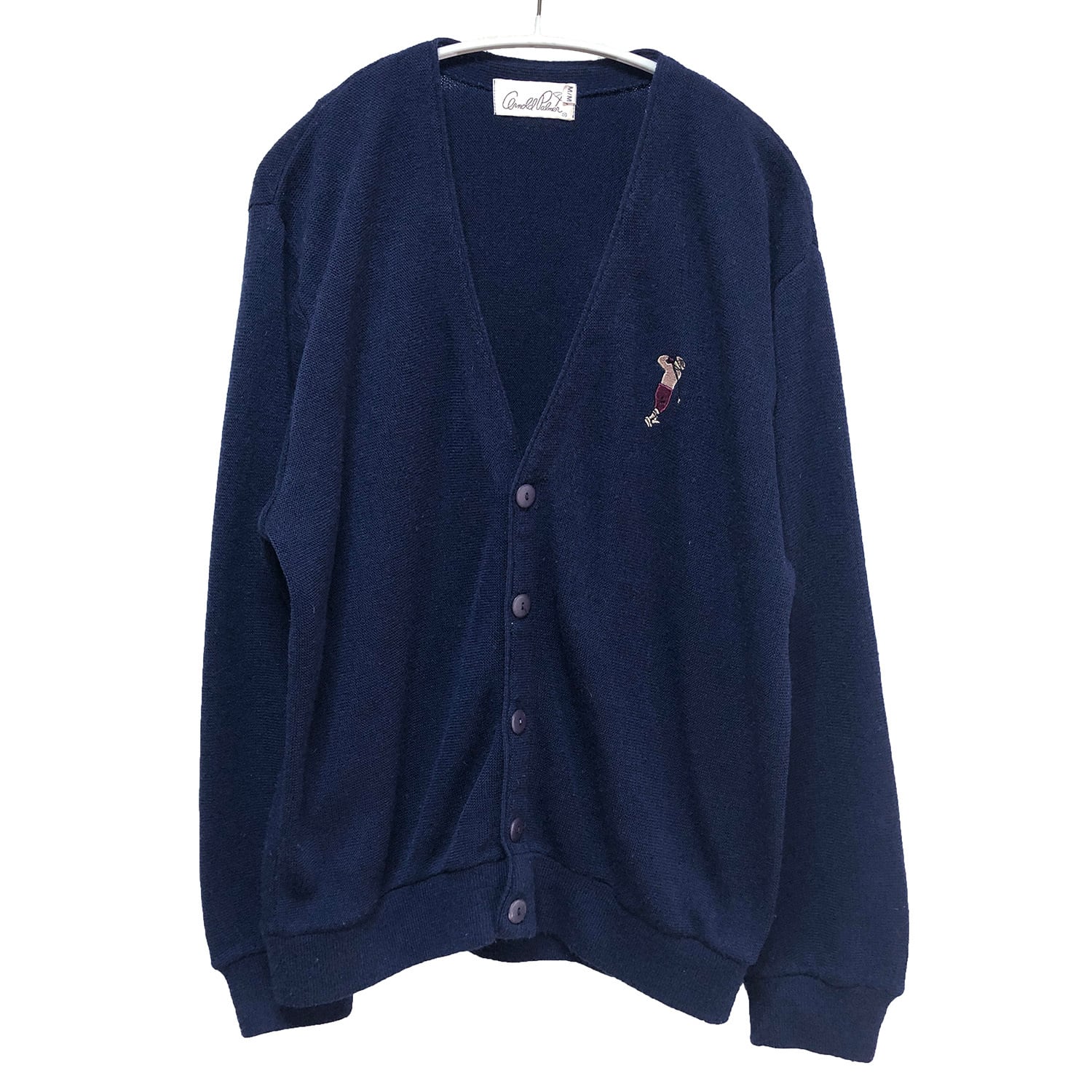 90S アーノルドパーマー ヴィンテージ アクリルニット ゴルフ 刺繍 カーディガン メンズM ネイビー 紺色 Arnold Palmer 古着