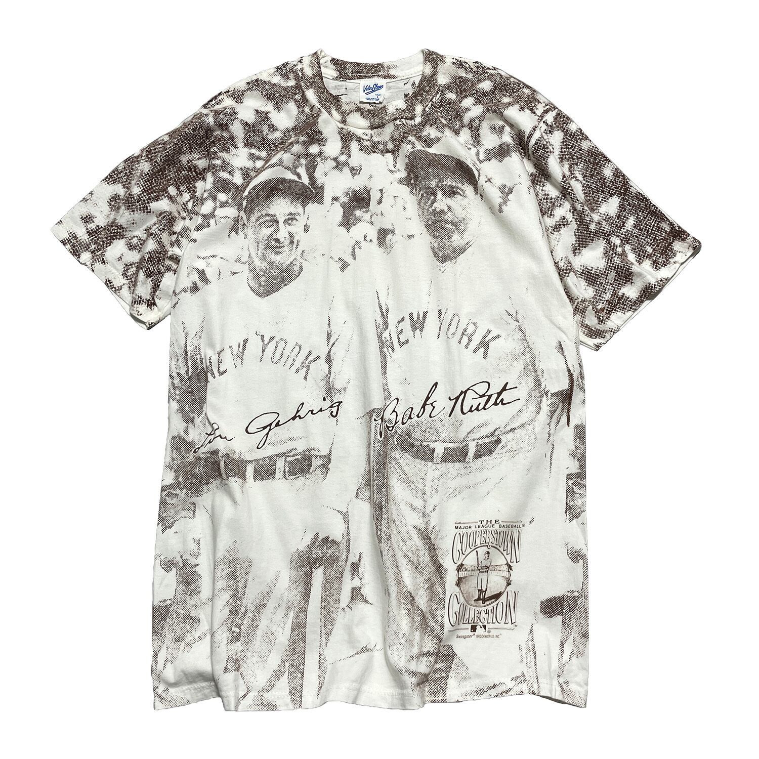 90S USA製 半袖 Tシャツ ベーブルース ルーゲーリック オーバープリント ニューヨークヤンキース レジェンド メンズL BA1457