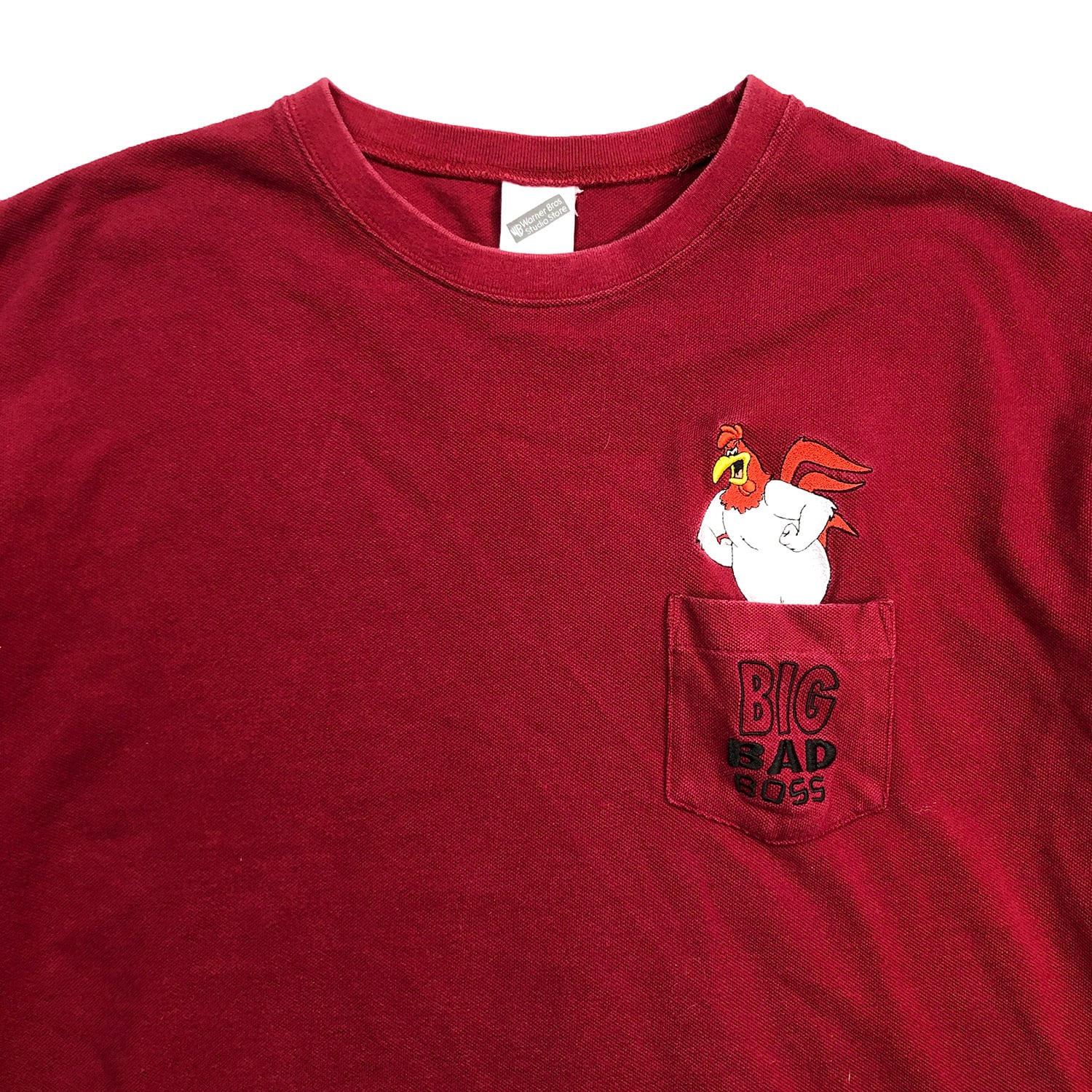 00S ワーナーブラザーズ ルーニーテューンズ フォグホーンレグホーン ニワトリ 刺繍 鹿の子コットン Tシャツ ポケット付き メンズXL相当 大きいサイズ