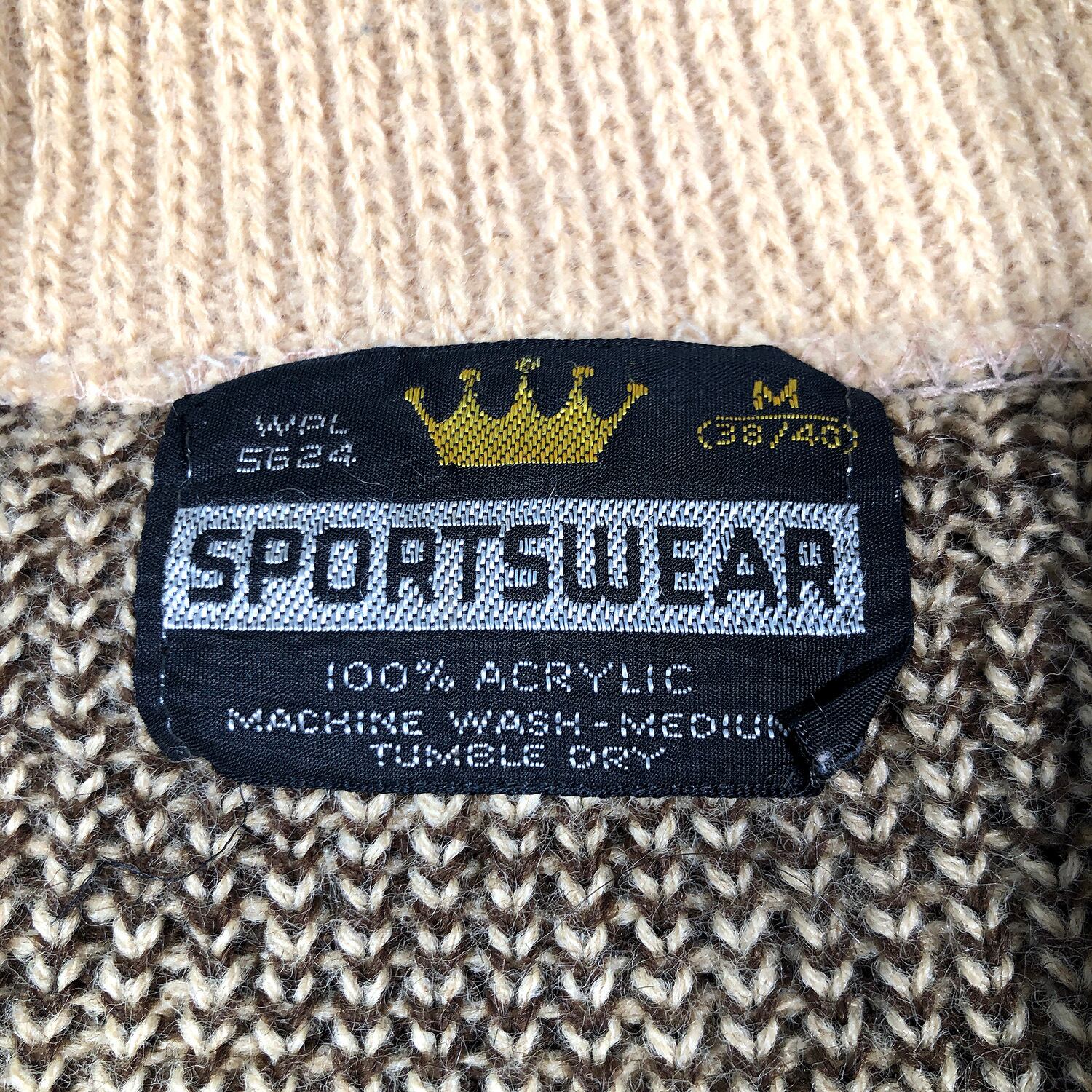 70S SPORTSWEAR ヴィンテージ アクリルニット アーガイル柄 ショールカラー カーディガン メンズM