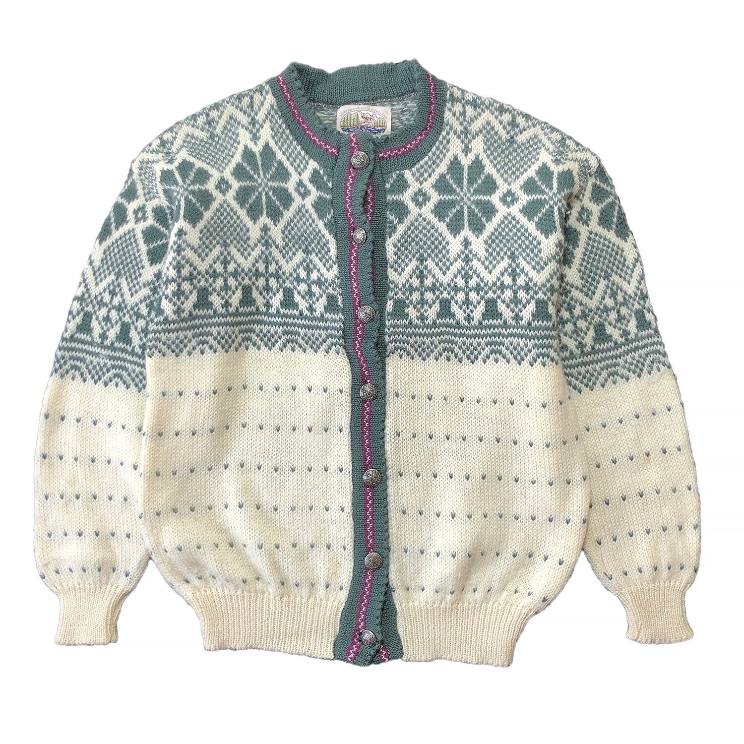 USA 古着 80S 90S ヴィンテージ ALPS ノルディック カーディガン ウールニット レディースM メタルボタン