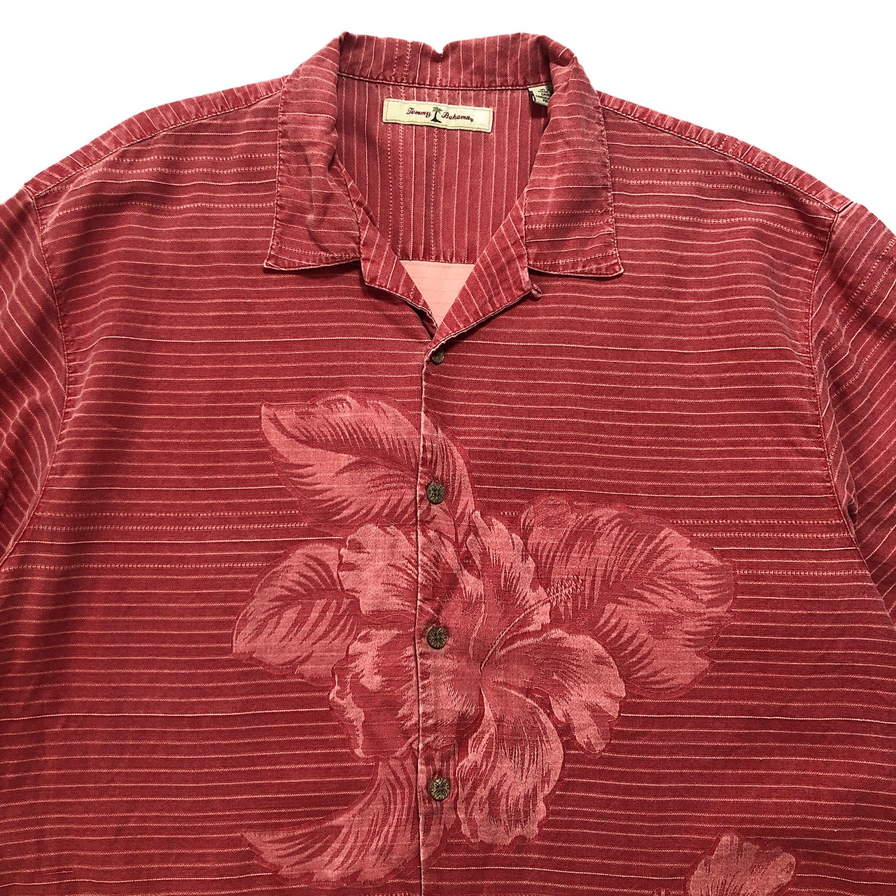 USA 古着 アロハシャツ キャンプシャツ トミーバハマ 開襟 オープンカラー シルク ジャガード メンズXL BF1638