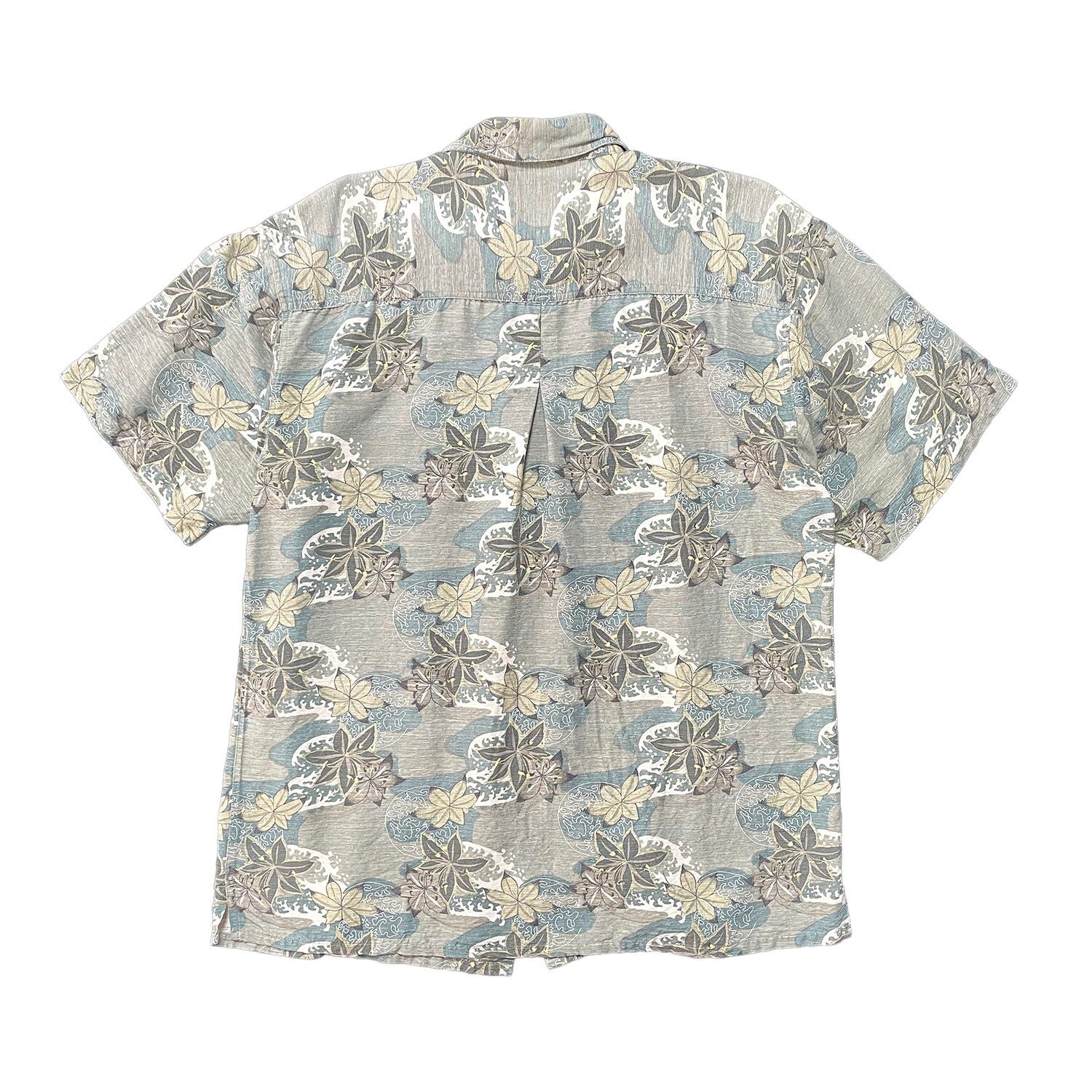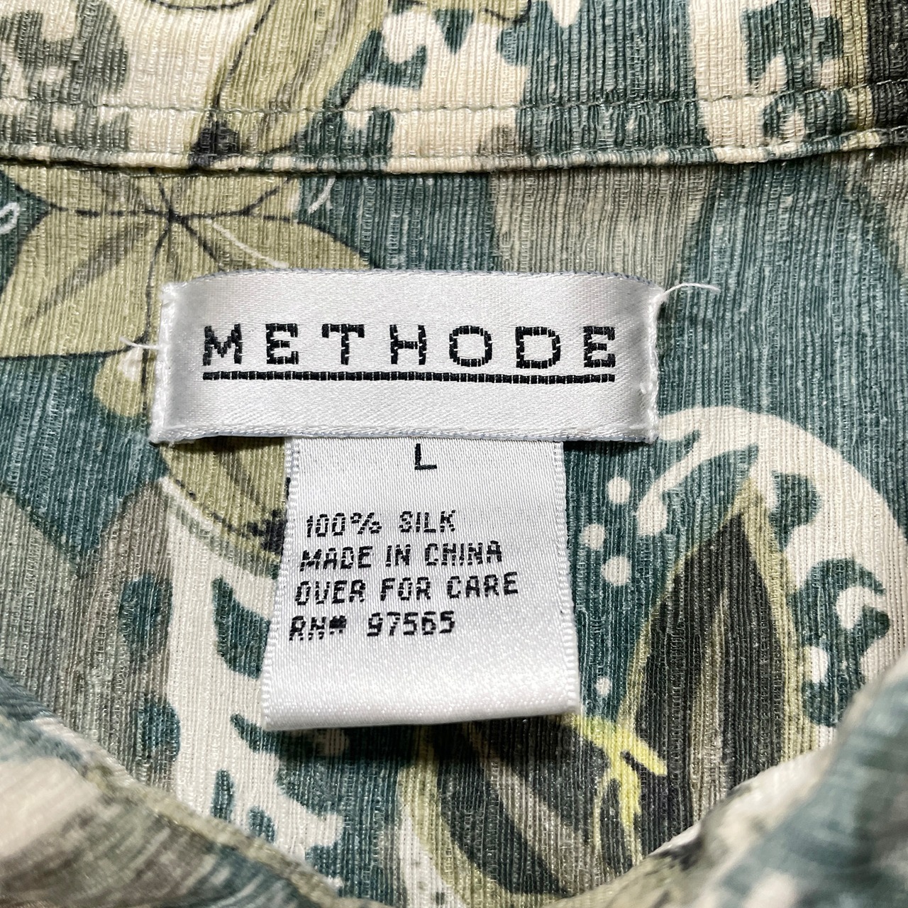 USA 古着 アロハシャツ ハワイアンシャツ METHODE シルク グリーン ハイビスカス メンズL BF2088