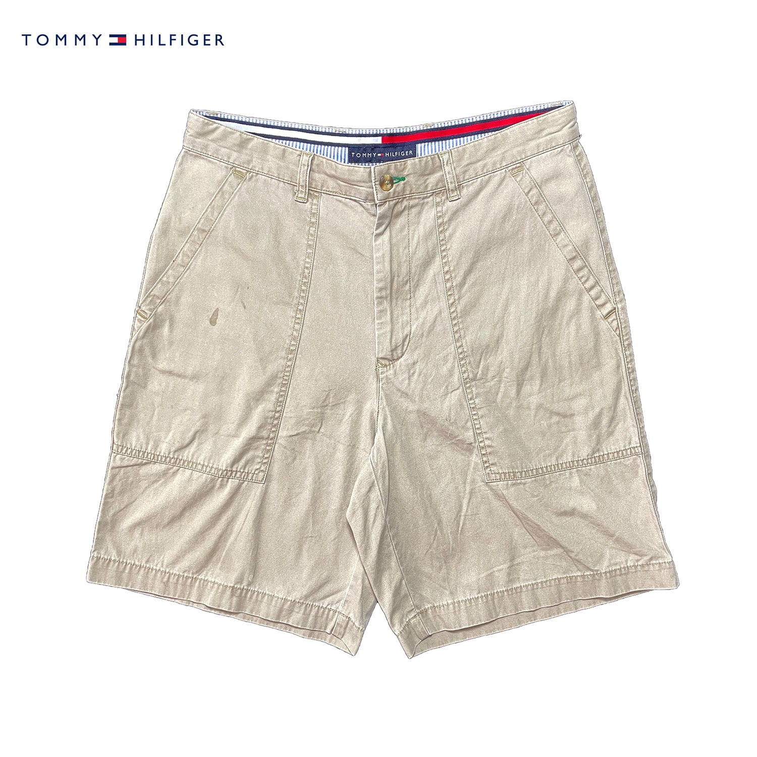 USA 古着 TOMMY HILFIGER トミーヒルフィガー コットン ショーツ ベイカーパンツ ハーフパンツ W31 ベージュ 半ズボン CE0198