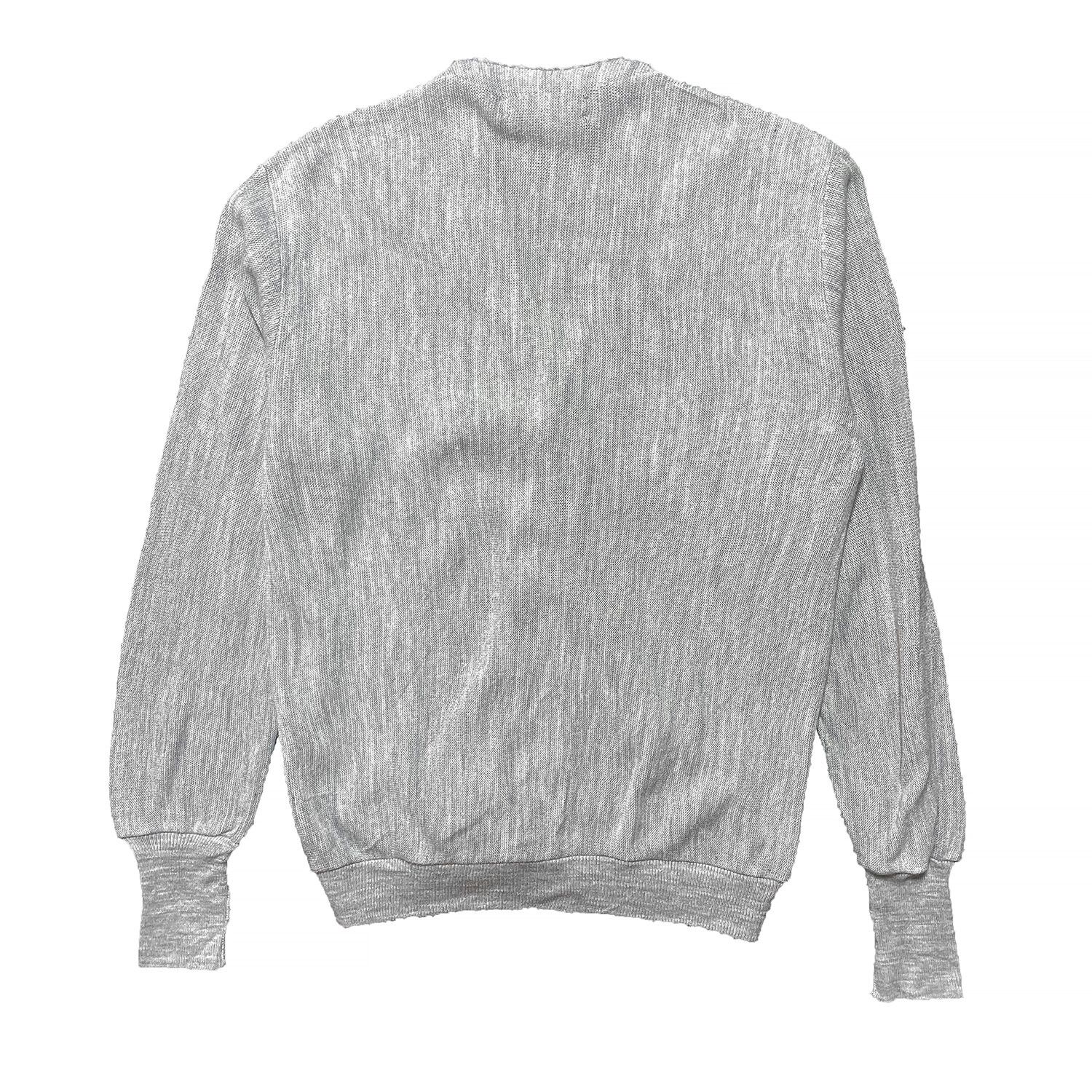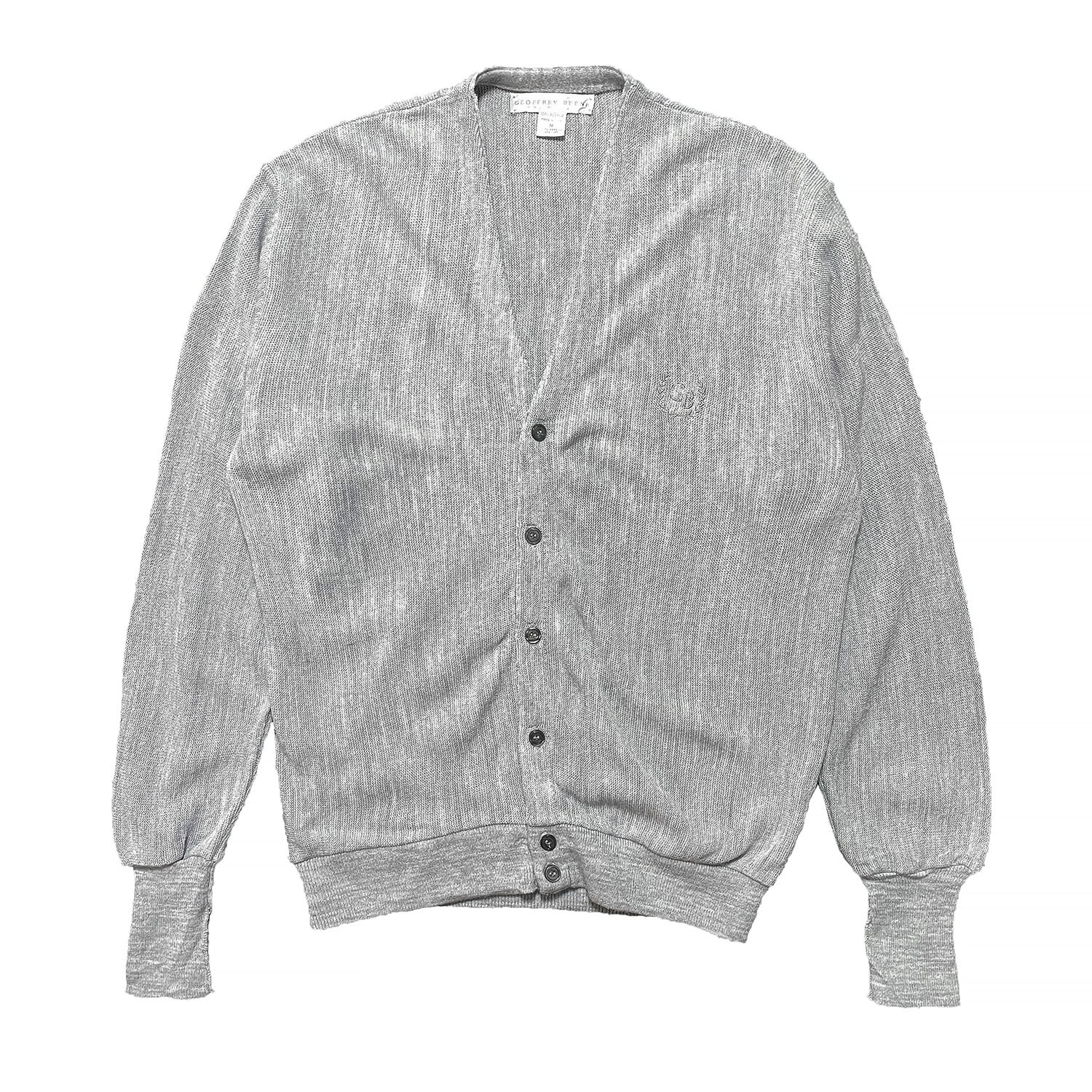 00S USA製 GEOFFREY BEENE ヴィンテージ アクリルニット 刺繍ロゴ カーディガン グレー メンズM 灰色 BH0232