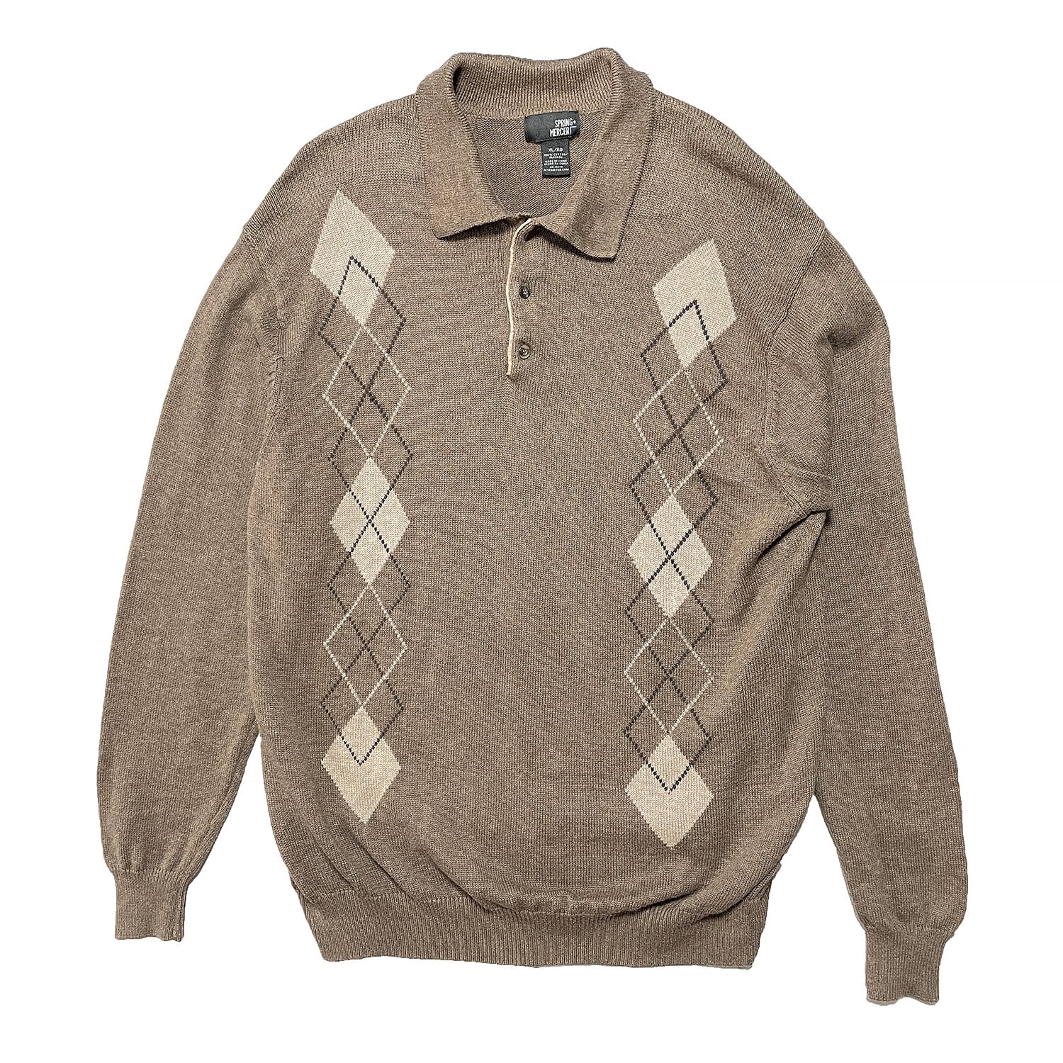 USA 古着 00S SPRING MERCER コットンニット 長袖 アーガイル柄 ニットポロシャツ セーター メンズXL ブラウン 大きいサイズ BJ0701