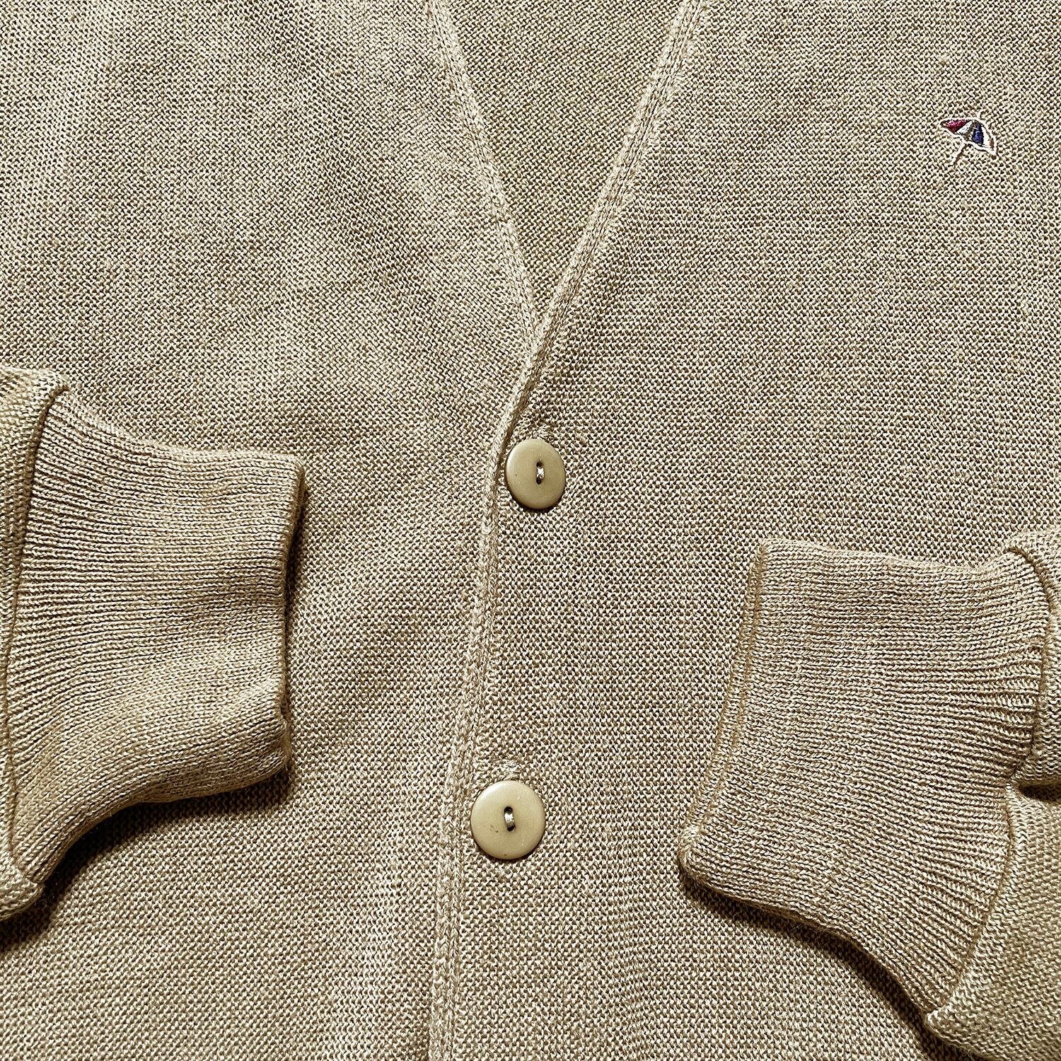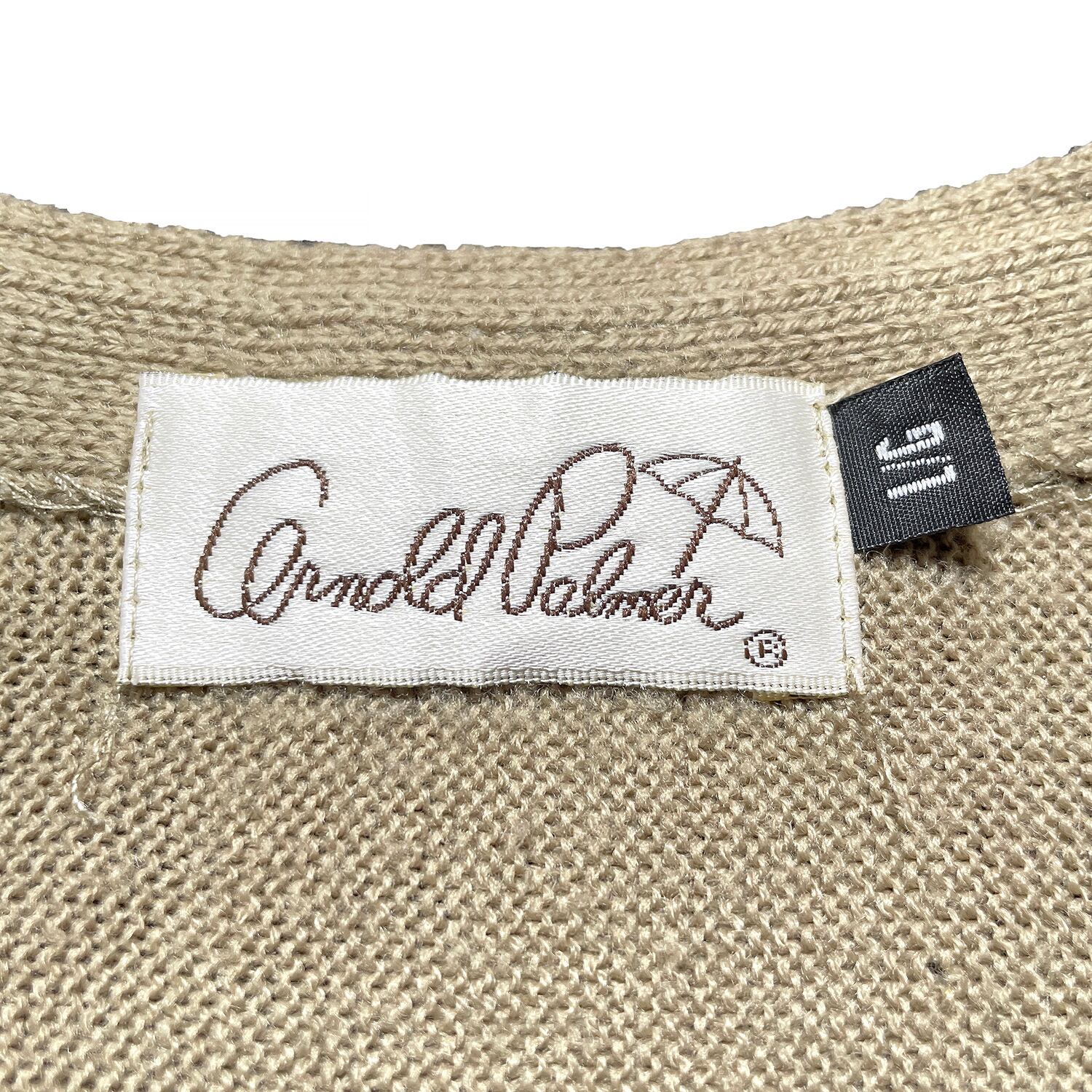 USA 古着 90S USA製 Arnold Palmer アーノルドパーマー ヴィンテージ アクリルニット 刺繍ロゴ カーディガン メンズL ベージュ BH0265