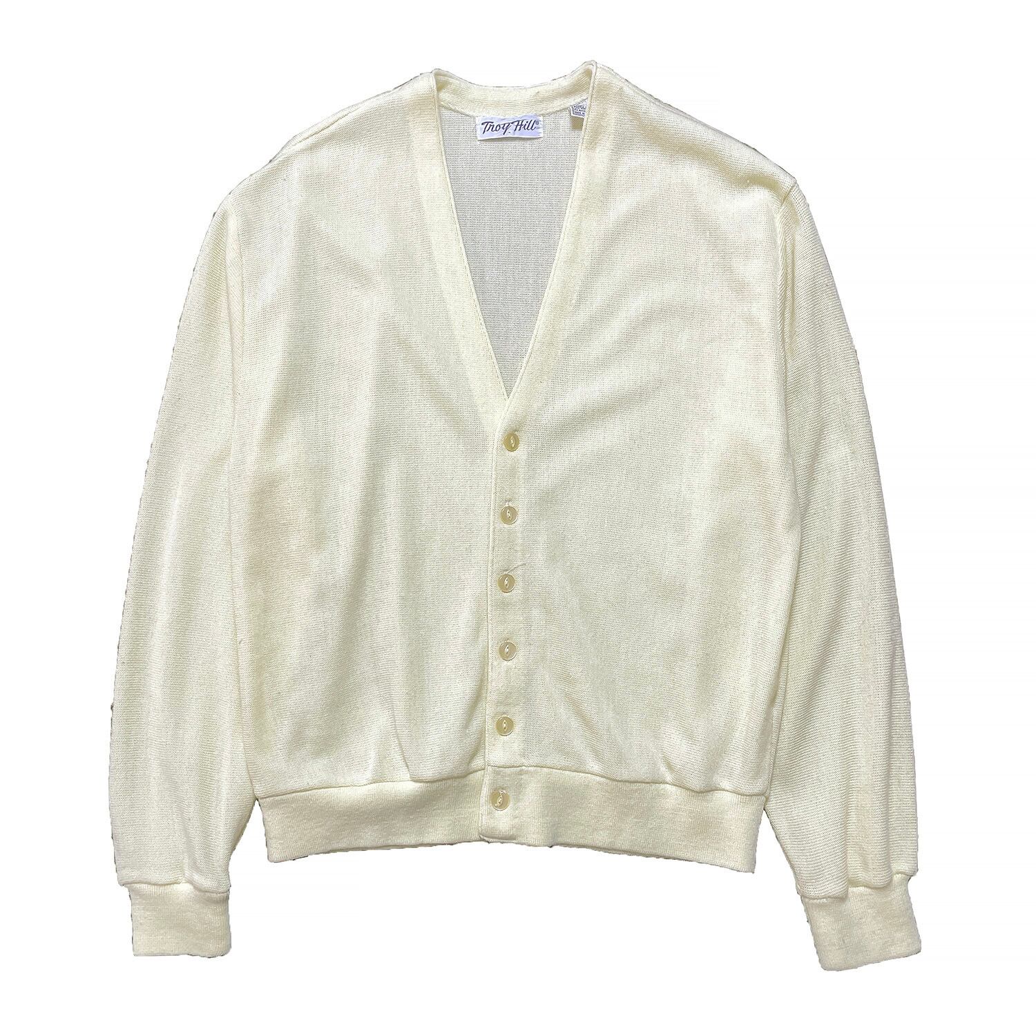 USA 古着 90S Troy Hill ヴィンテージ アクリルニット カーディガン メンズXL 薄いイエロー系 大きいサイズ 中古 BH0277