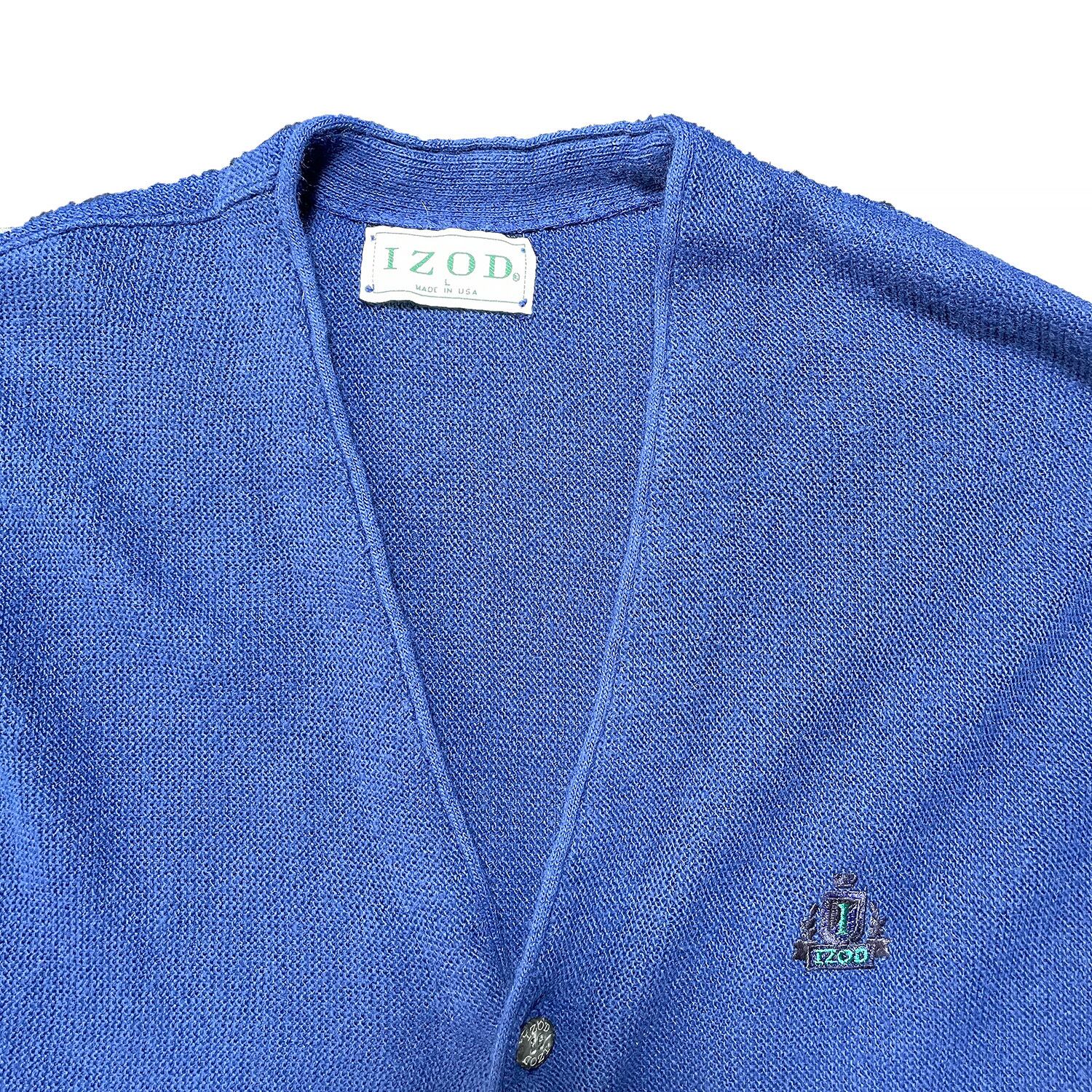 USA 古着 90S USA製 IZOD アイゾッド ヴィンテージ アクリルニット 刺繍ロゴ カーディガン メンズL 青紺色系 中古 大きいサイズ BH0292