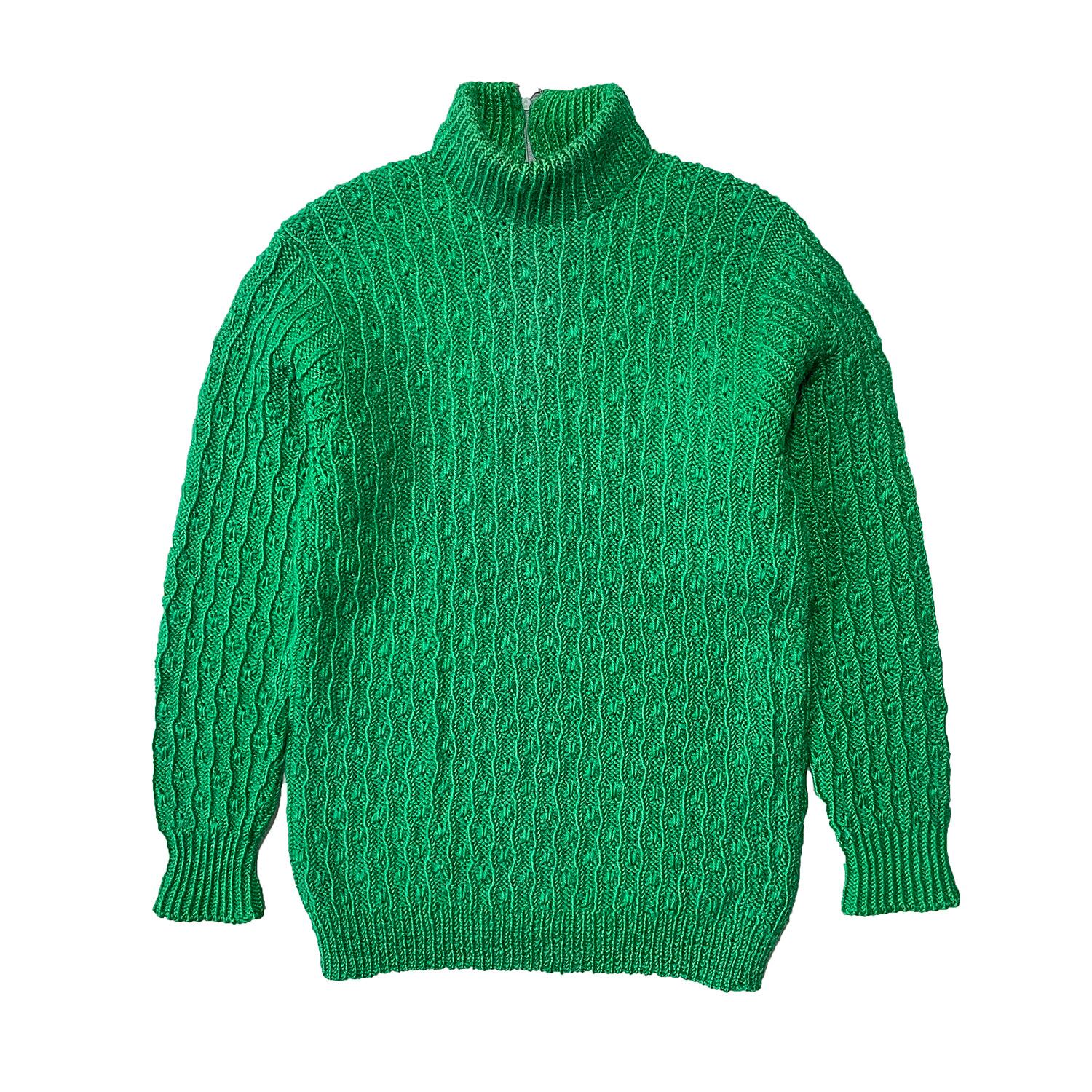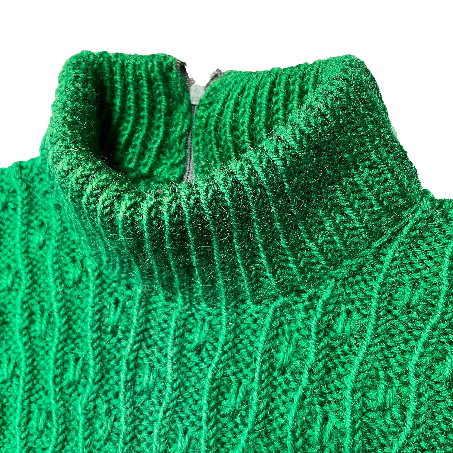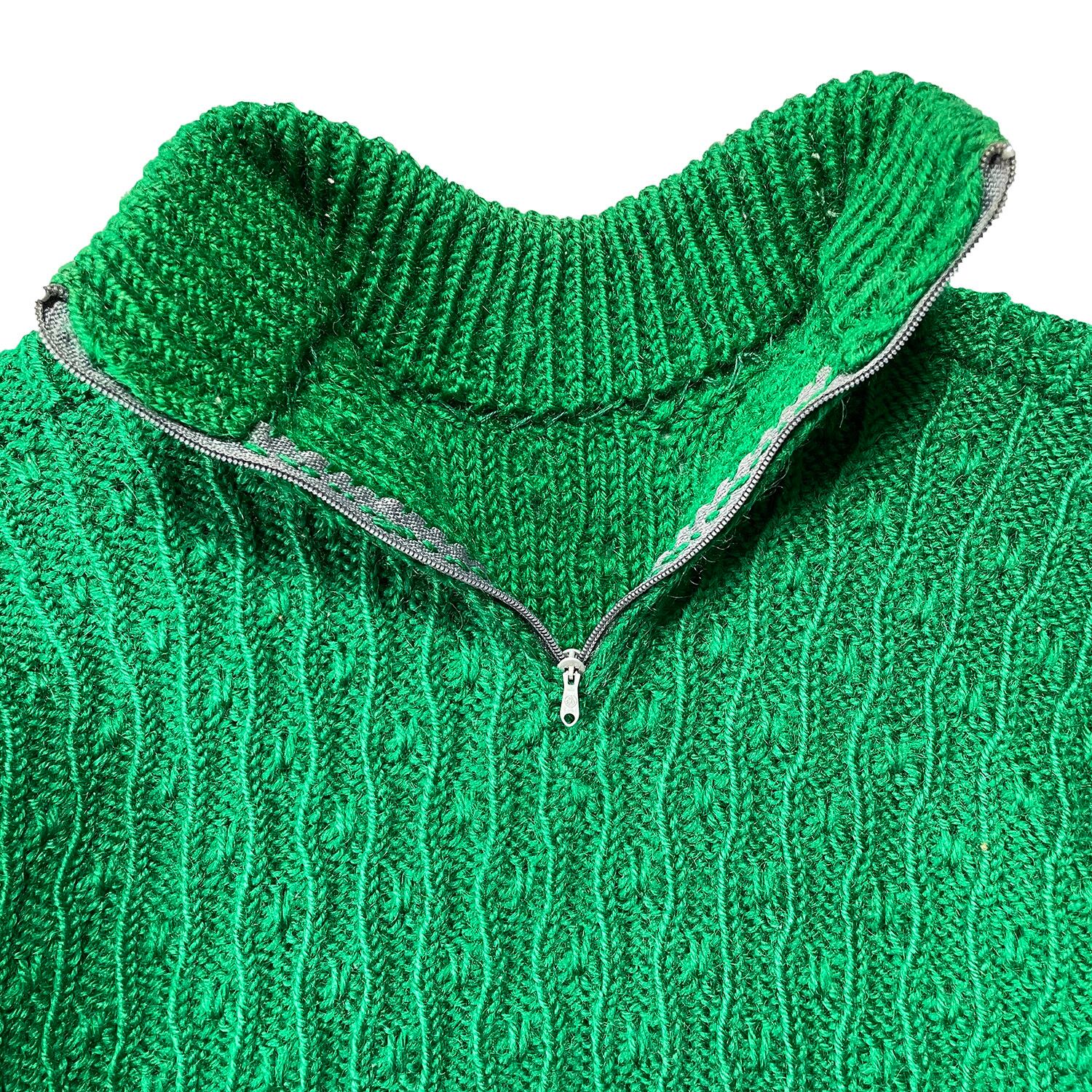 USA 古着 70S ヴィンテージ モックネック ハンドニット セーター グリーン レディースS/M相当 ウィメンズ 中古 BJ0740