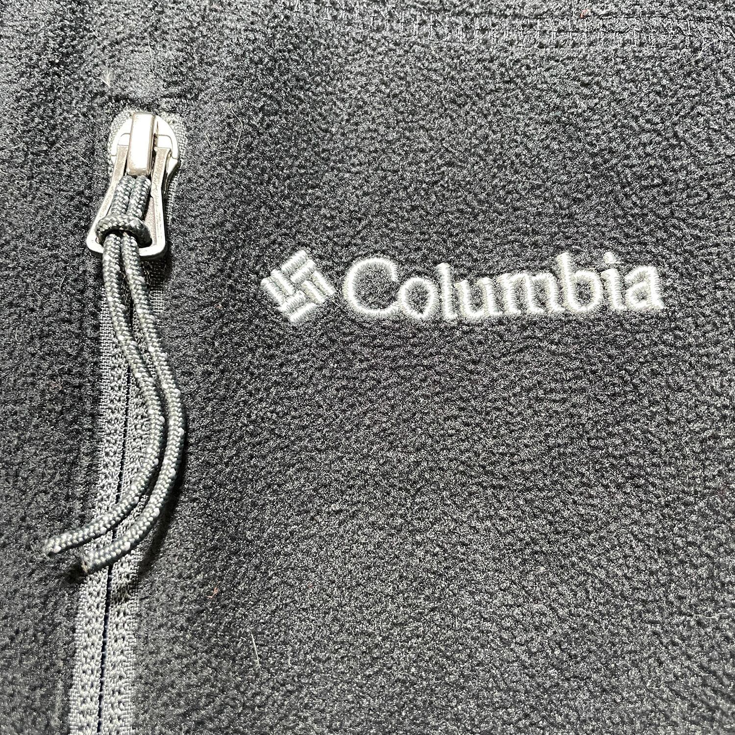 USA 古着 Columbia コロンビア レイクスペリオルカレッジ 刺繍ロゴ フリースジャケット ブラック メンズM アウトドア スペリオル湖 AA0305