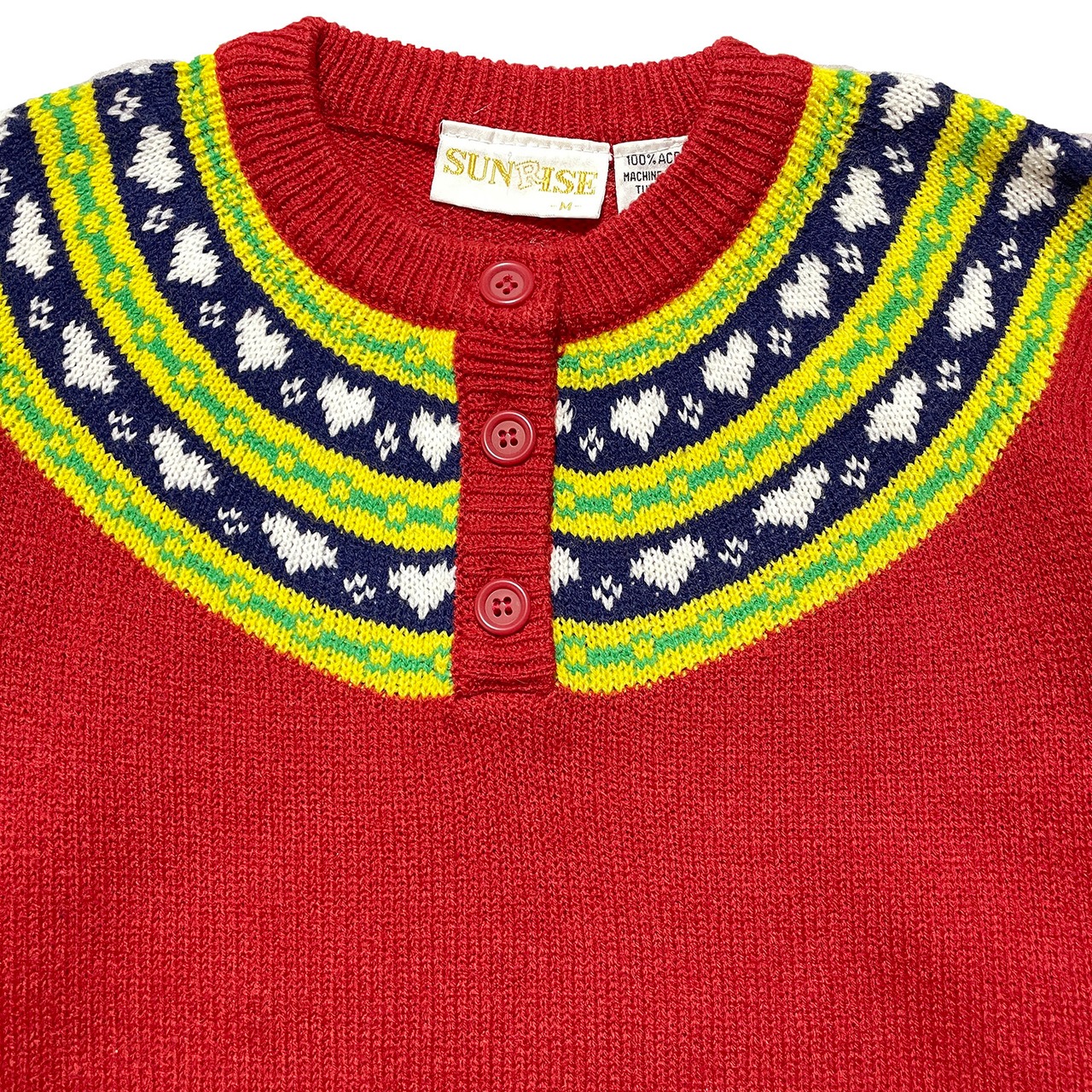 USA 古着 90S SUNRISE ヴィンテージ アクリルニット ノルディック デザイン セーター レッド レディースM 赤色 中古 BJ0766