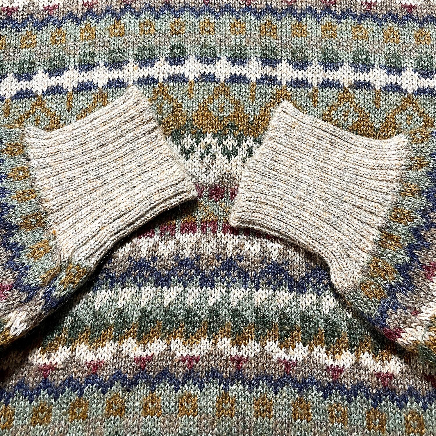 USA 古着 90S HUNTER'S RIDGE ヴィンテージ アクリルニット フェアアイル柄 クルーネック セーター ウィメンズXL 中古 BJ0772