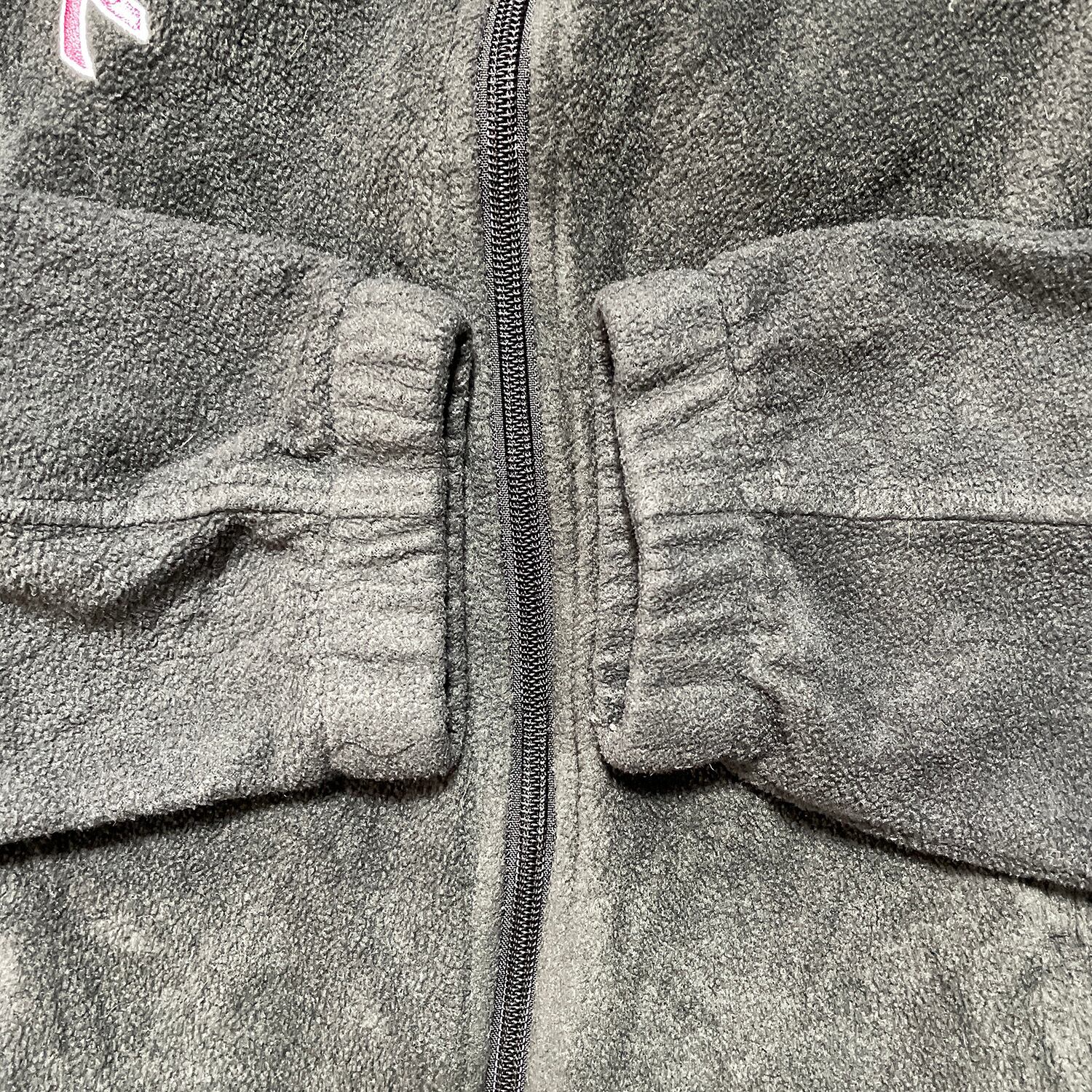USA 古着 Columbia コロンビア アウトドア ポリエステル フルジップ フリースジャケット レディースL グレー ピンクリボン 中古 AA0368