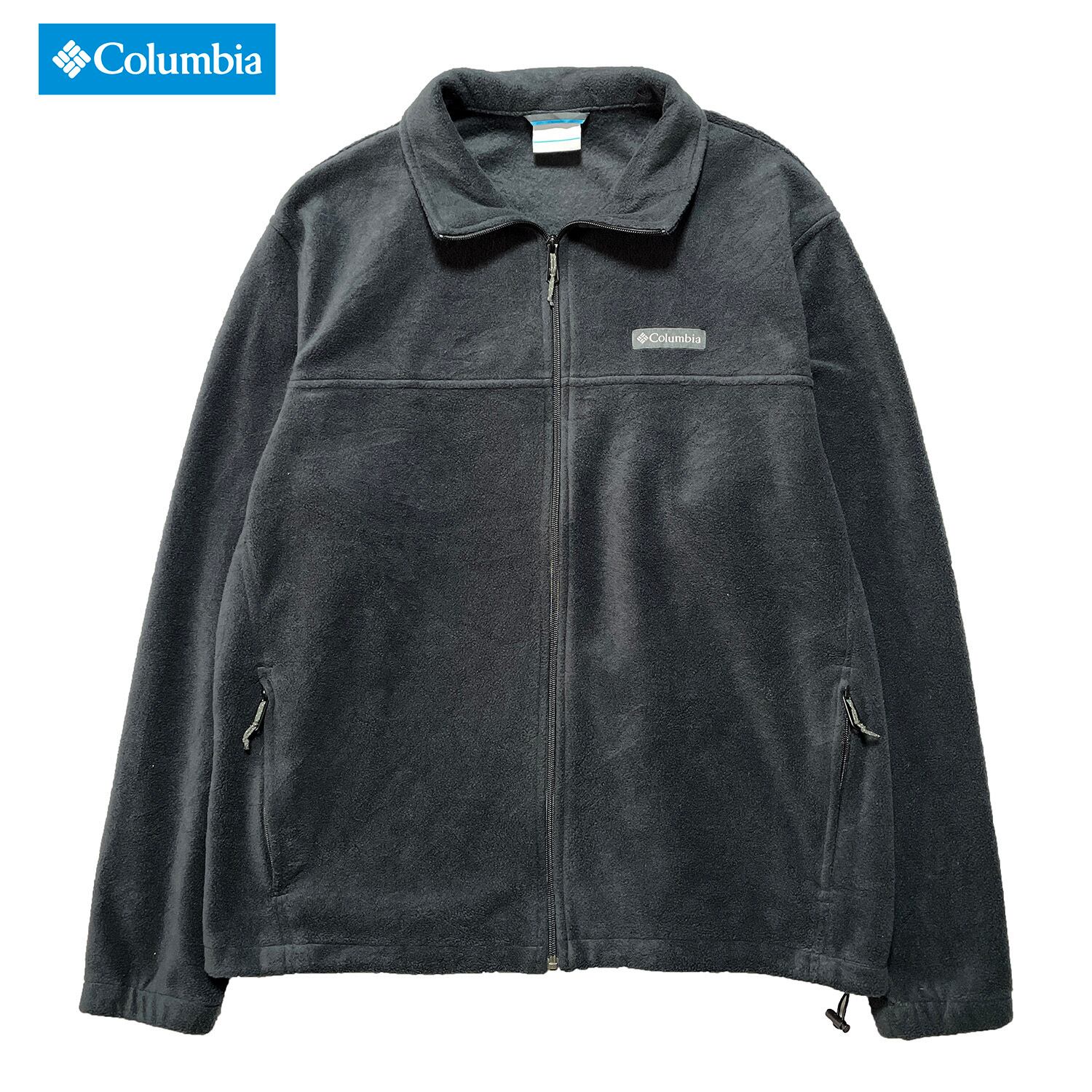 USA 古着 Columbia コロンビア アウトドア ポリエステル フルジップ フリースジャケット メンズXL ブラック 大きいサイズ 中古 AA0369