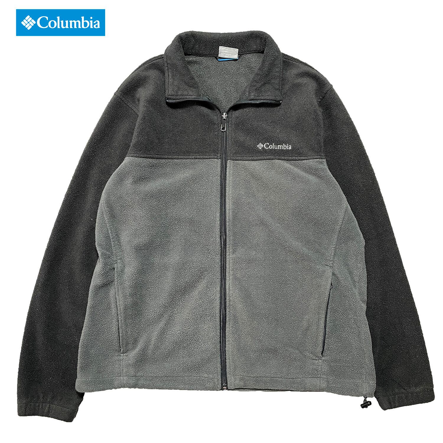 USA 古着 Columbia コロンビア アウトドア ポリエステル フルジップフリース メンズL グレー ブラック AA0379