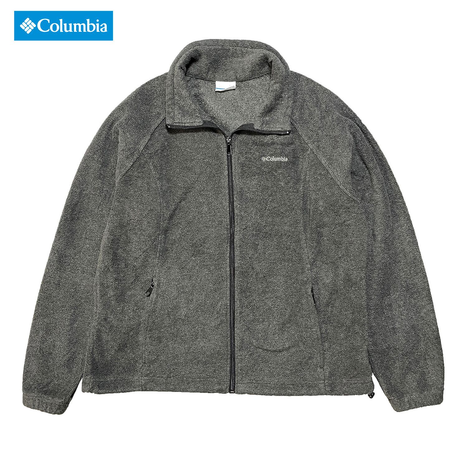 USA 古着 Columbia コロンビア アウトドア ポリエステル フルジップ フリースジャケット ウィメンズXL チャコールグレー AA0393