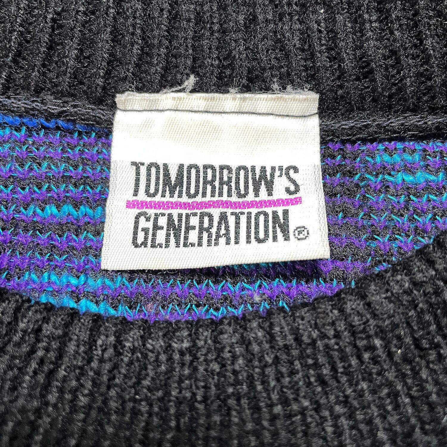 USA 古着 90S USA製 ヴィンテージ デザインニット アクリル 総柄 クルーネック セーター レディースXS相当 BJ0797
