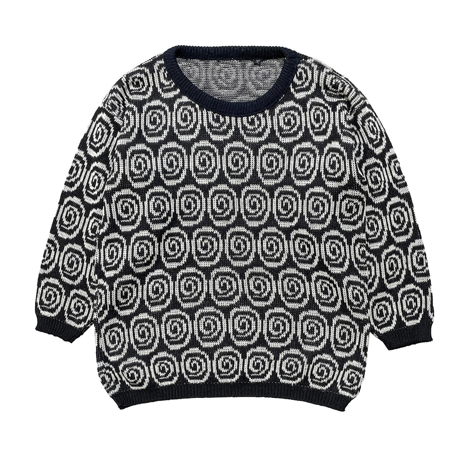 古着 80S USA製 VENEZIA MARC CHEMTOB ヴィンテージ うずまき柄 デザインニット クルーネック セーター レディースL相当 BJ0805