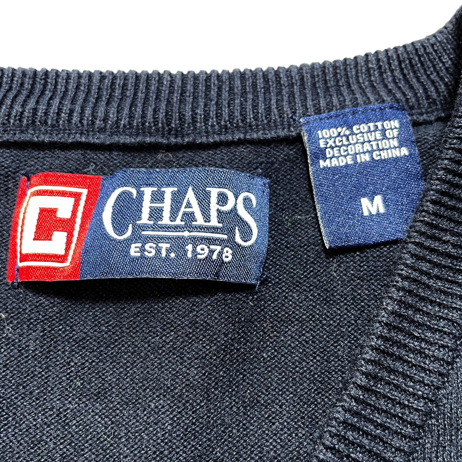 USA 古着 CHAPS チャップス コットンニット アーガイル柄 ニットベスト ネイビー 紺色 メンズM BI0115