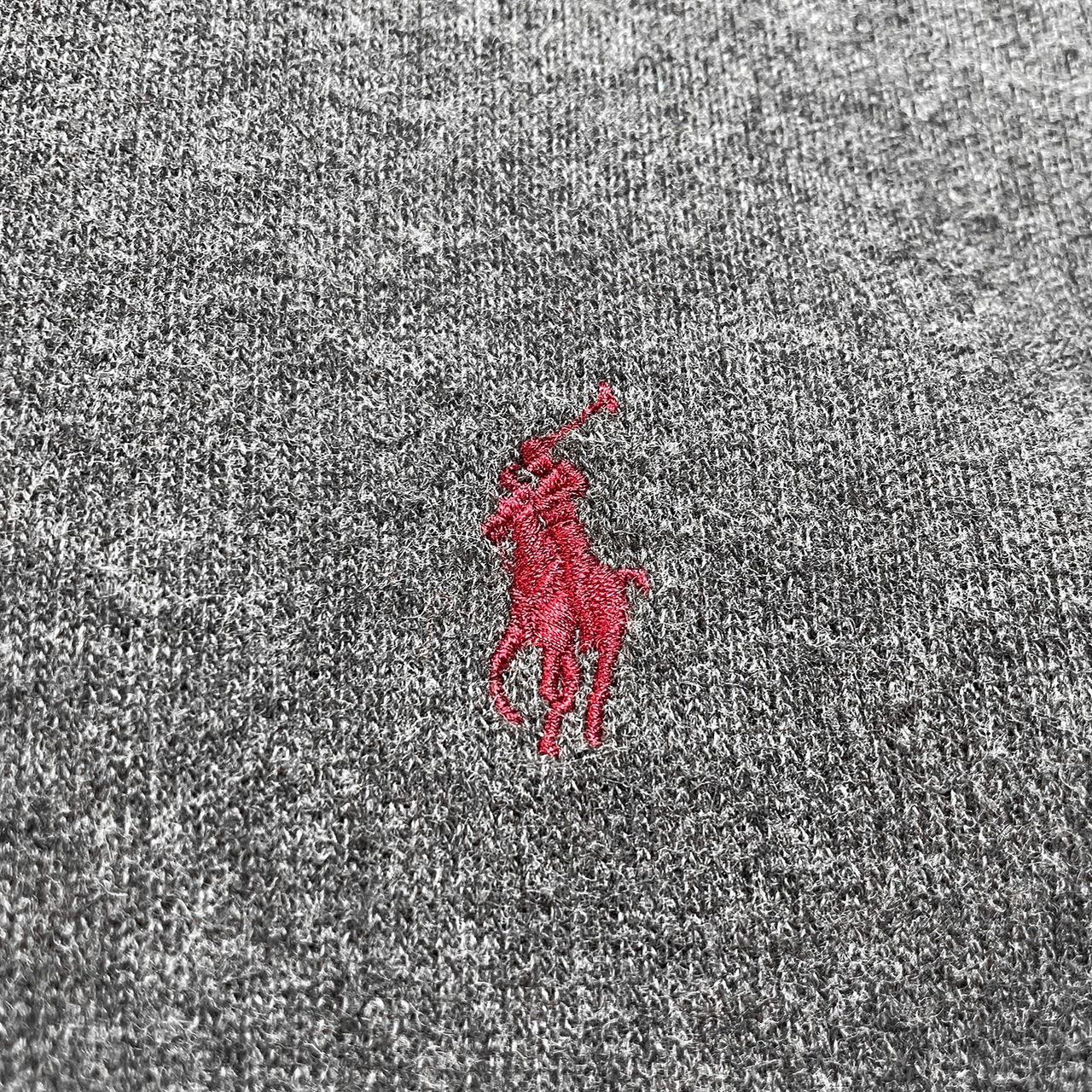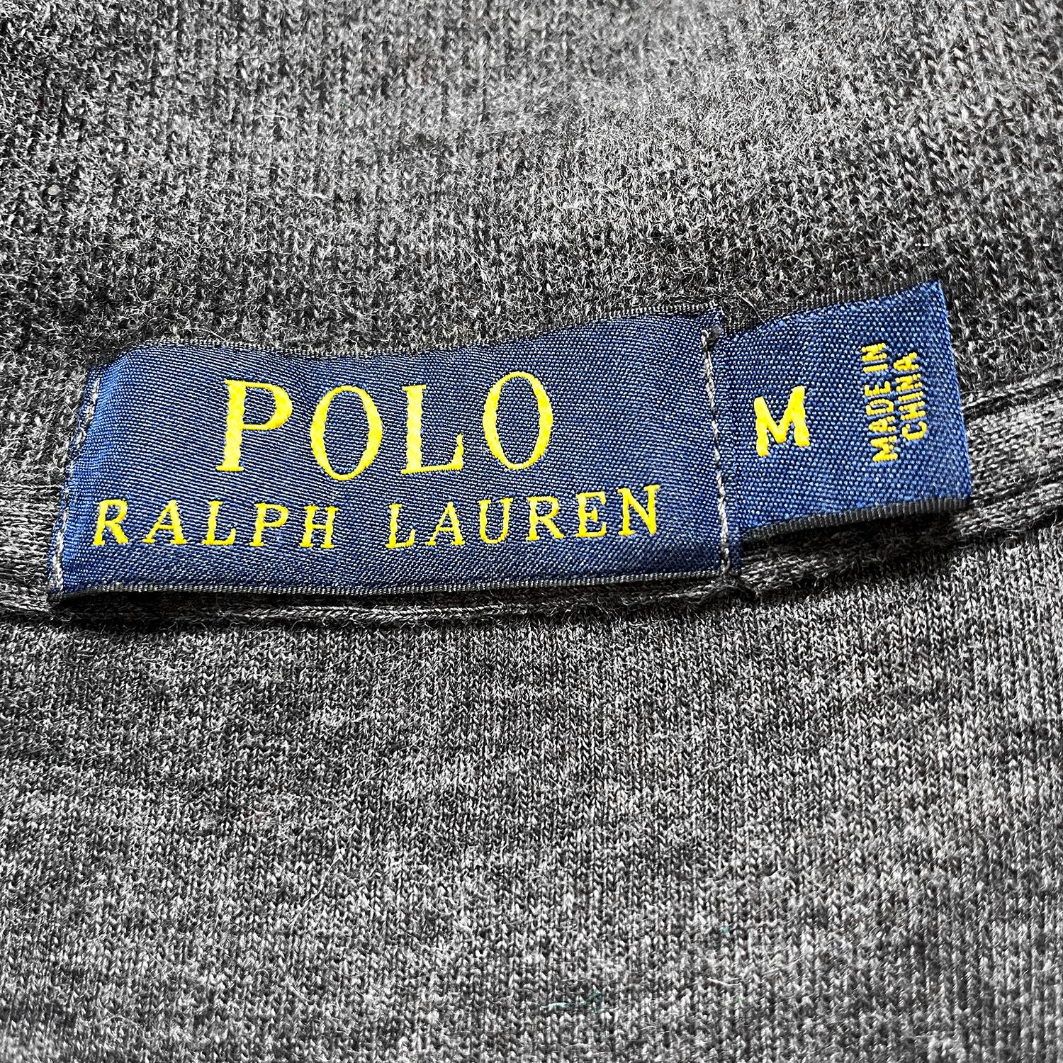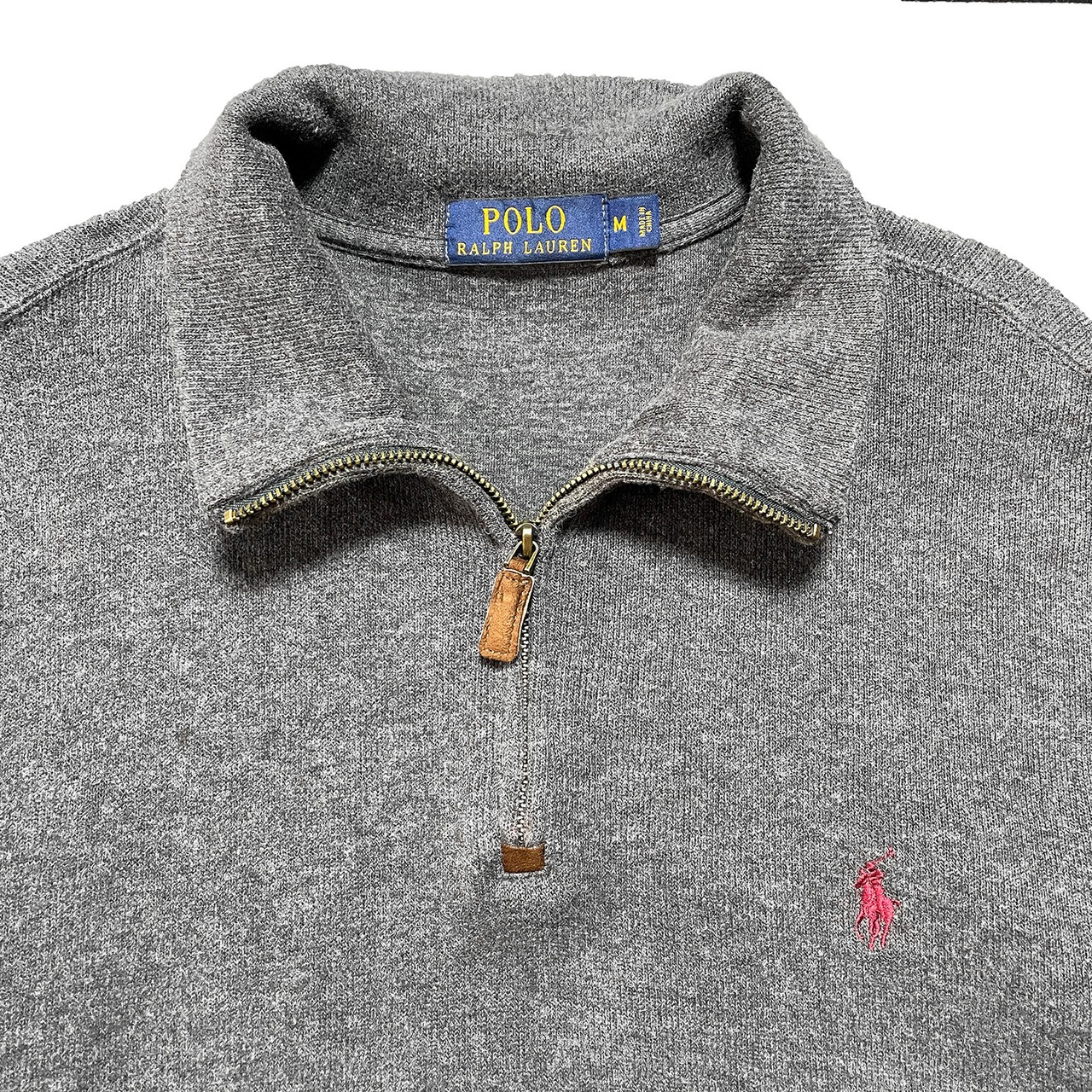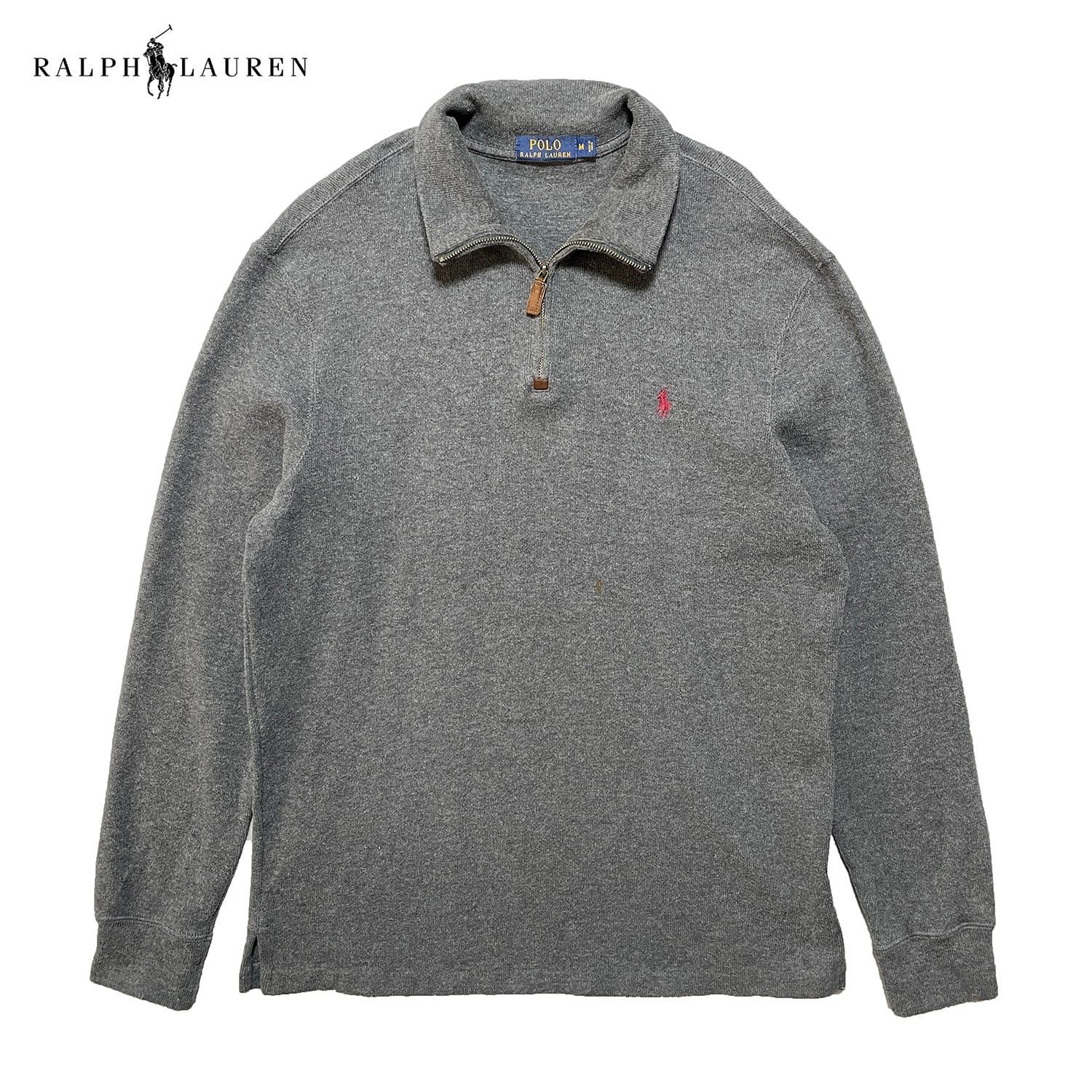 古着 POLO RALPH LAUREN ポロ ラルフローレン ハーフジップ コットンニット スウェット トレーナー グレー メンズM BD2114