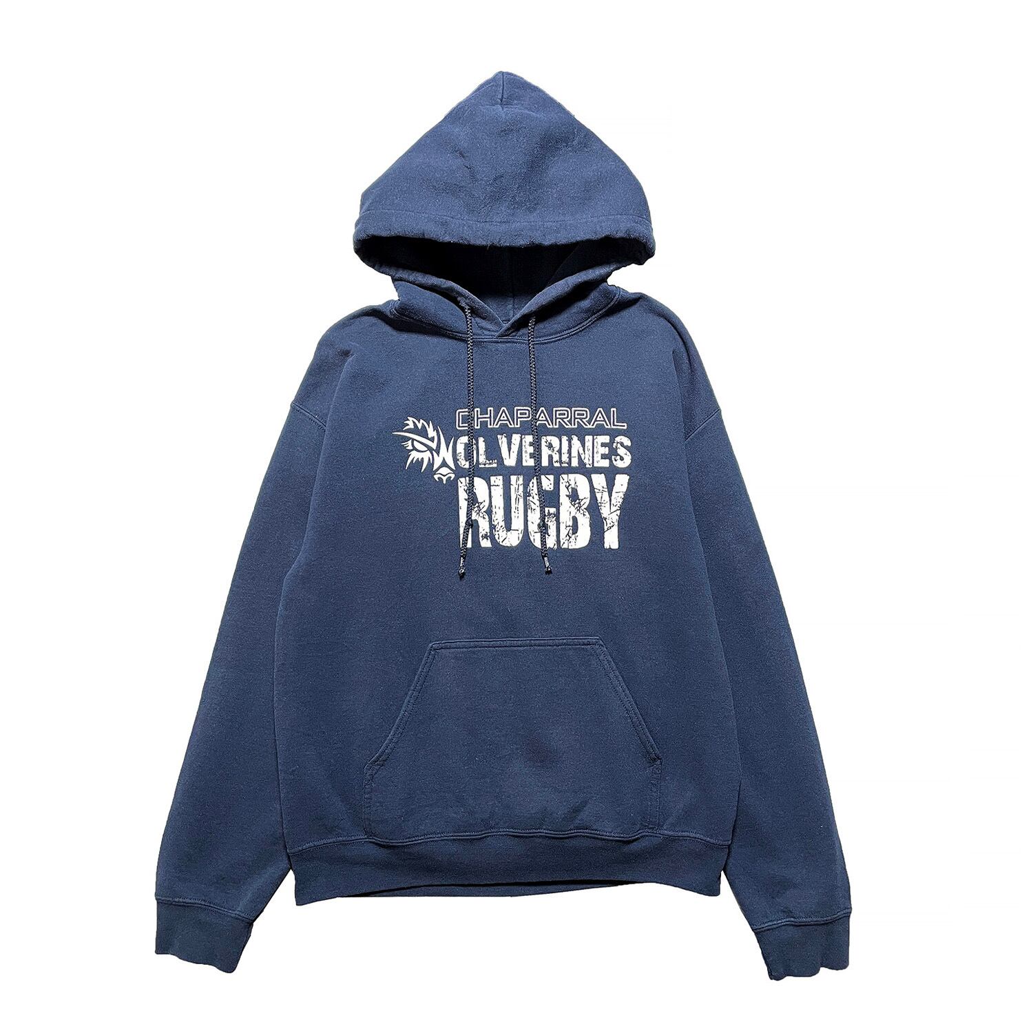 USA 古着 GILDAN CHAPARRAL OLVERINES RUGBY ギルダン プリント スウェットパーカ トレーナー ネイビー メンズM ヴィンテージ BE0785