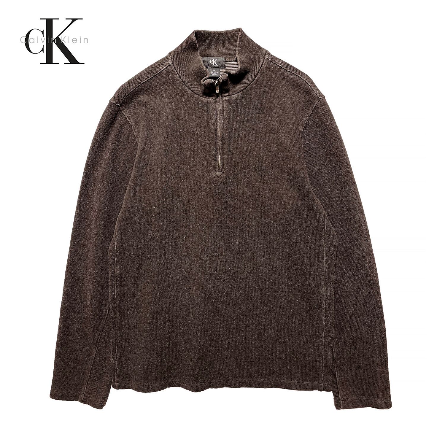 USA 古着 Calvin Klein カルバンクライン コットンニット ハーフジップ セーター スウェット 焦げ茶色 メンズM BJ0893