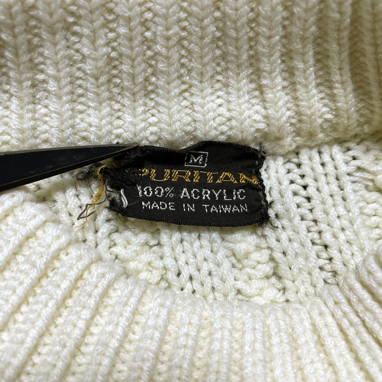 USA 古着 80S PURITAN ヴィンテージ ピューリタン アクリルニット ケーブル柄 セーター ホワイト系 メンズM BJ0903