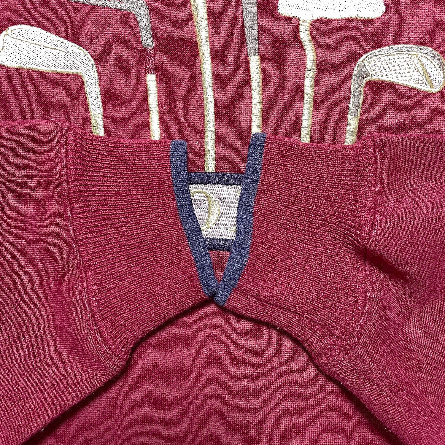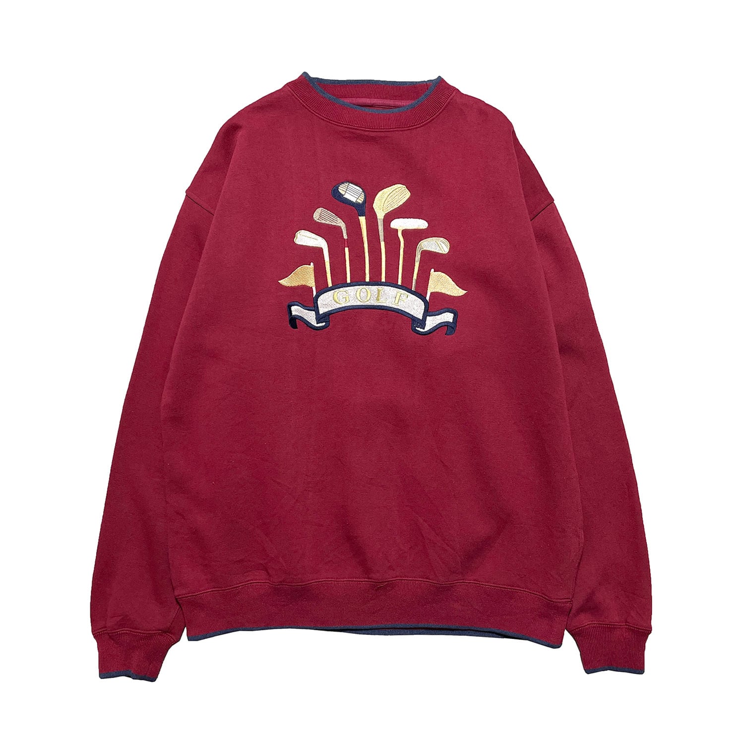 USA 古着 90S RED CLIFF ヴィンテージ ゴルフ 刺繍プリント クルーネック スウェット トレーナー メンズL マルーン BD2255