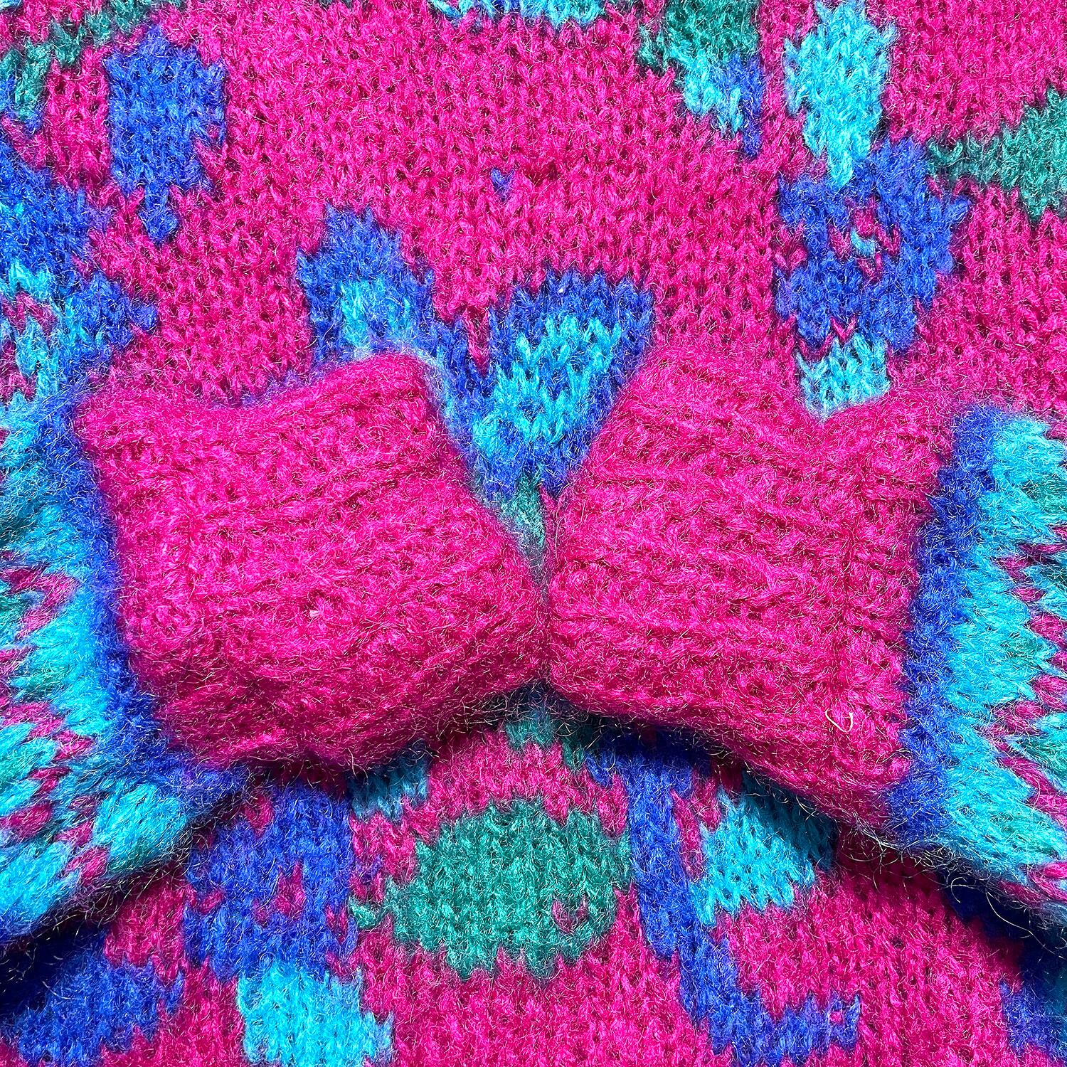 USA 古着 80S ヴィンテージ ウール/モヘア デザイン ハンドニット 手編み セーター 総柄 ピンク レディースL/XL相当 BJ0927