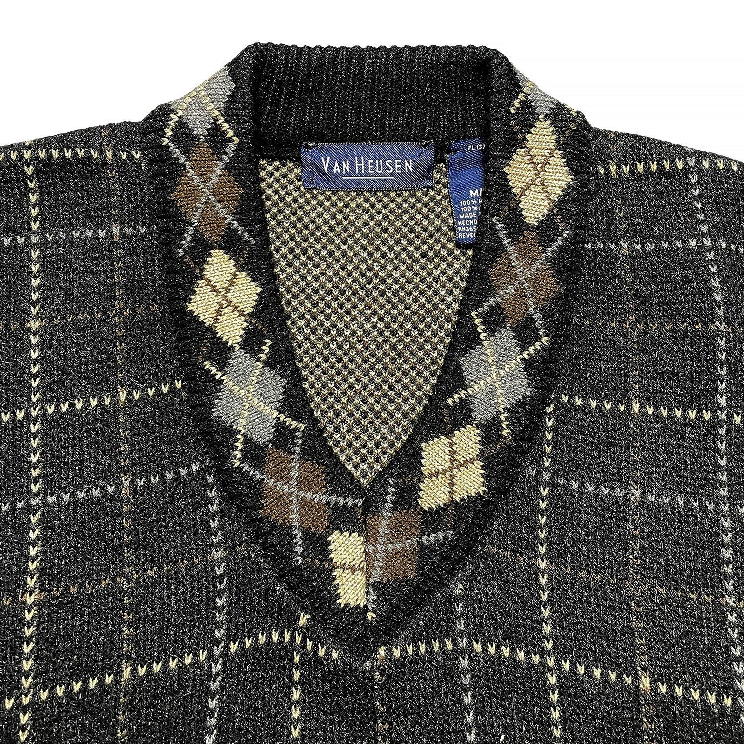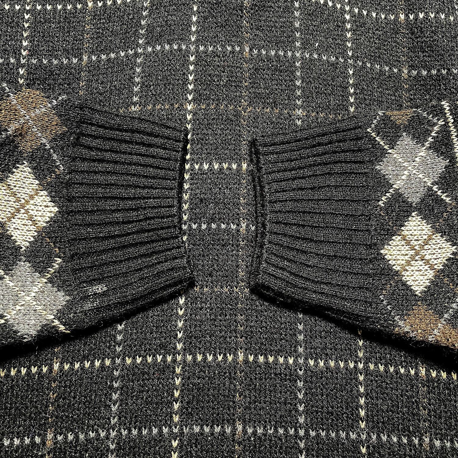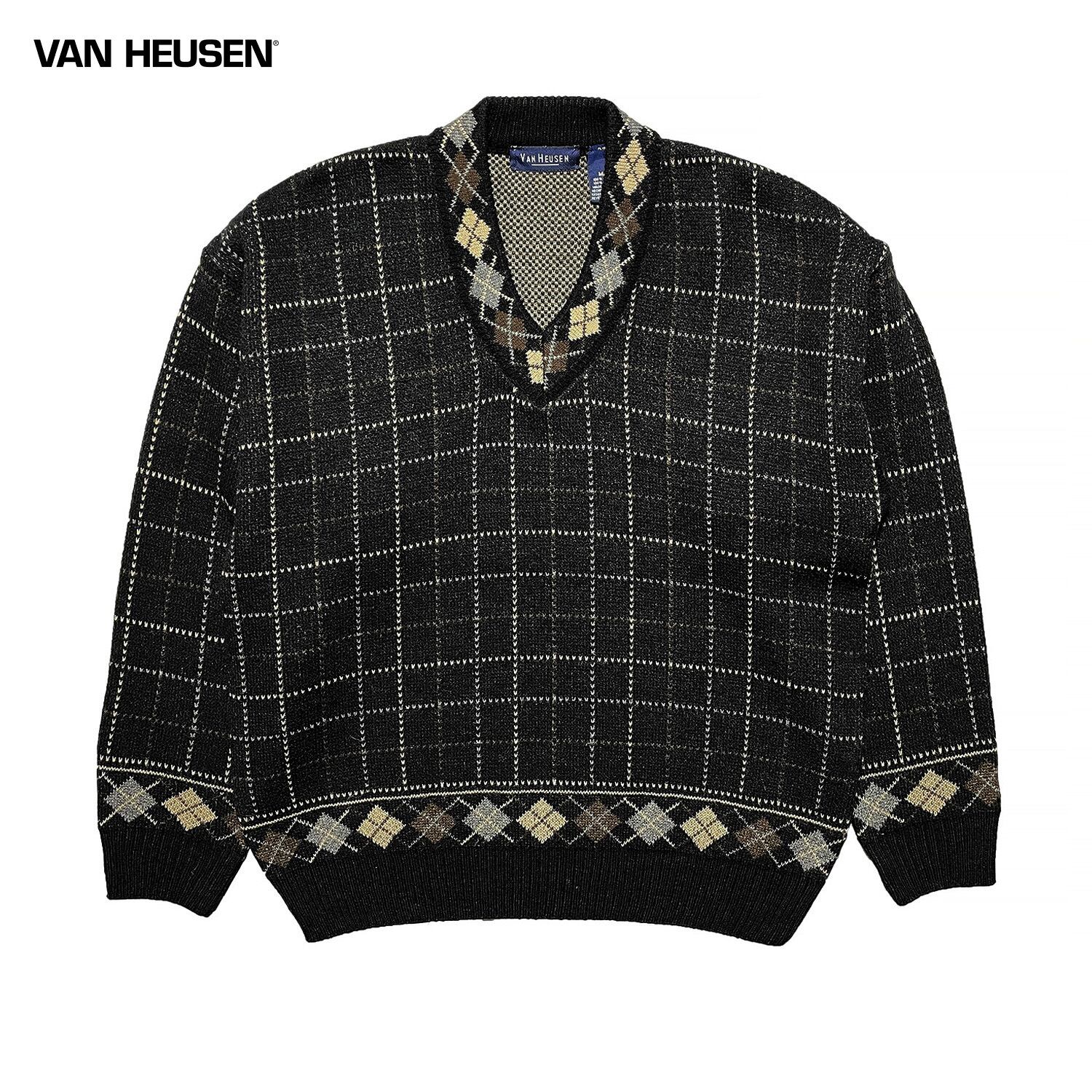 USA 古着 VAN HEUSEN バンヒューゼン アクリルニット アーガイル Vネック セーター メンズM ブラック 黒色 BJ0929