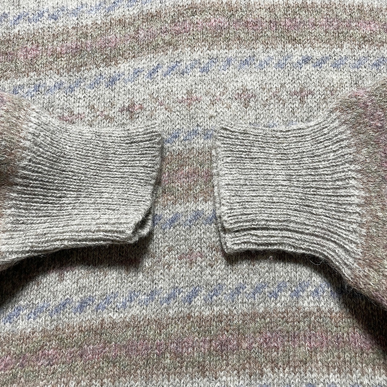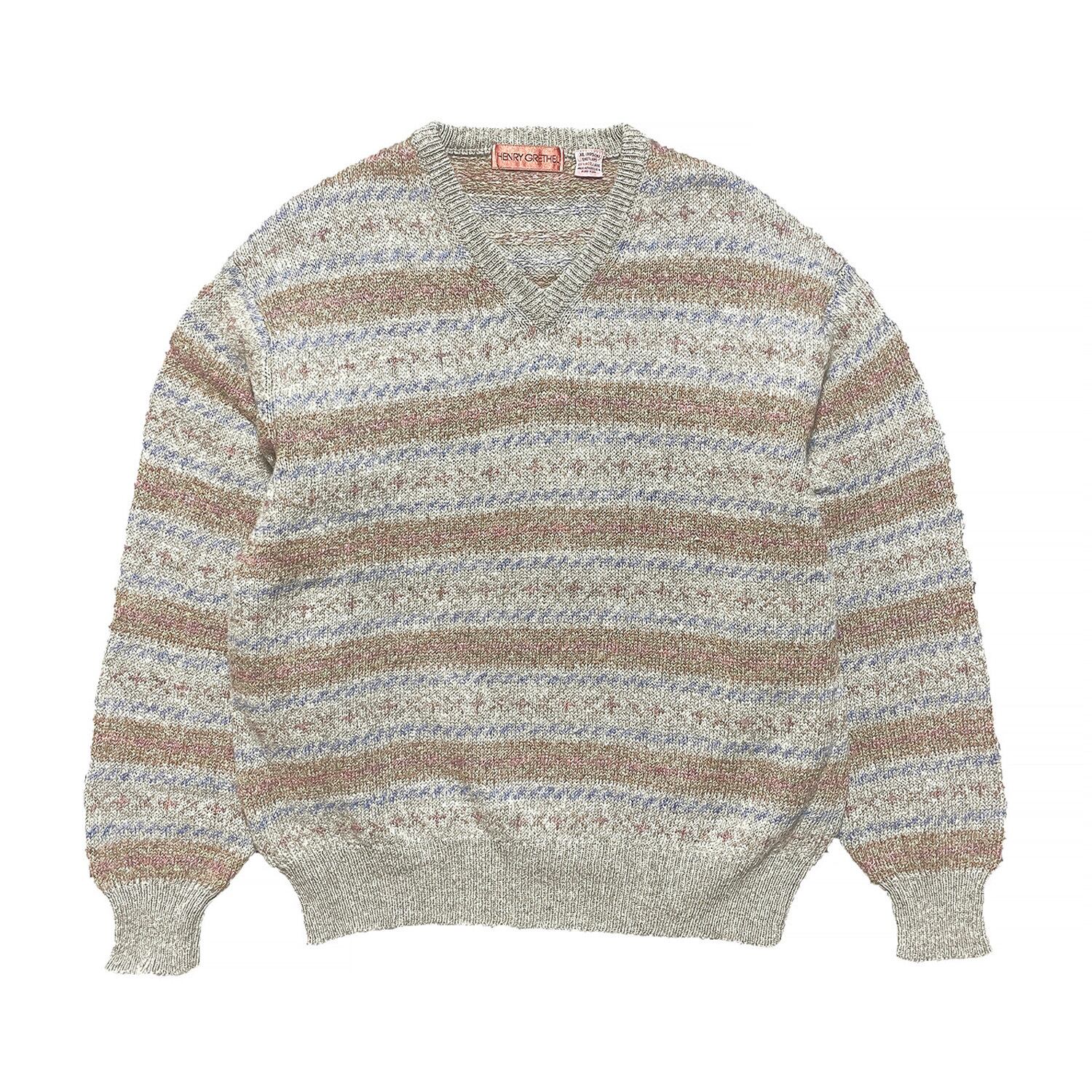 USA 古着 HENRY GRETHEL ヴィンテージ シェットランド ウールニット Vネック フェアアイル セーター メンズXL グレーベージュ BJ0930