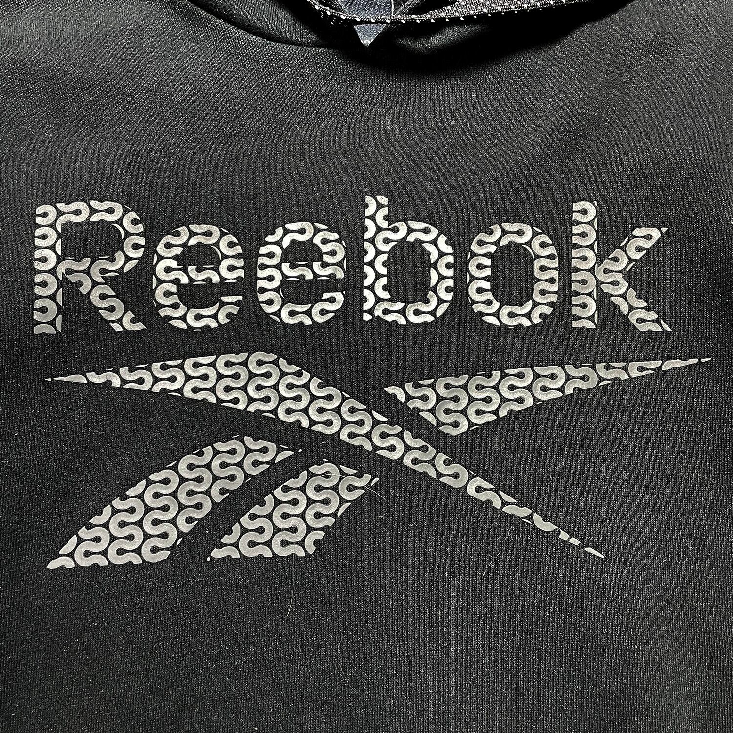 USA 古着 Reebok リーボック ロゴプリント スウェットパーカ トレーナー ブラック メンズXL 黒色 BE0794